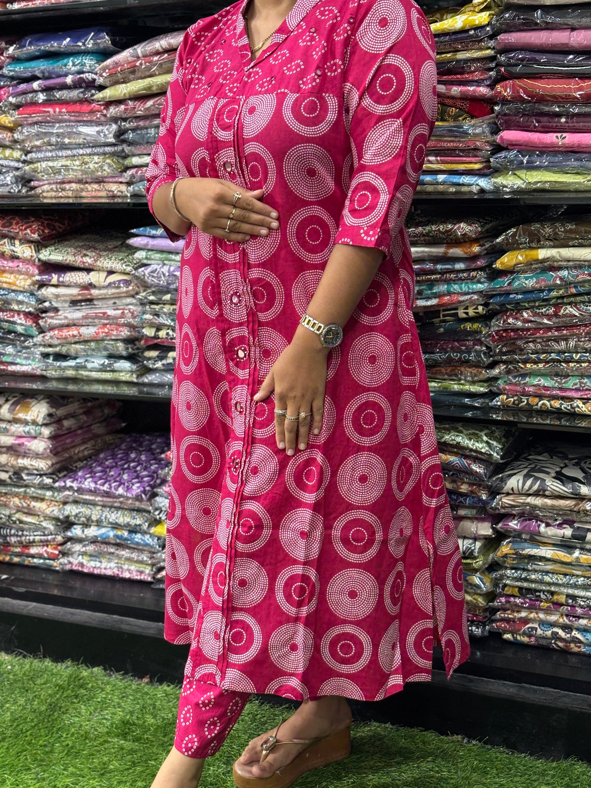 ALINE KURTI-PANT (HANDWORK)(PURE CAMRIC COTTON)