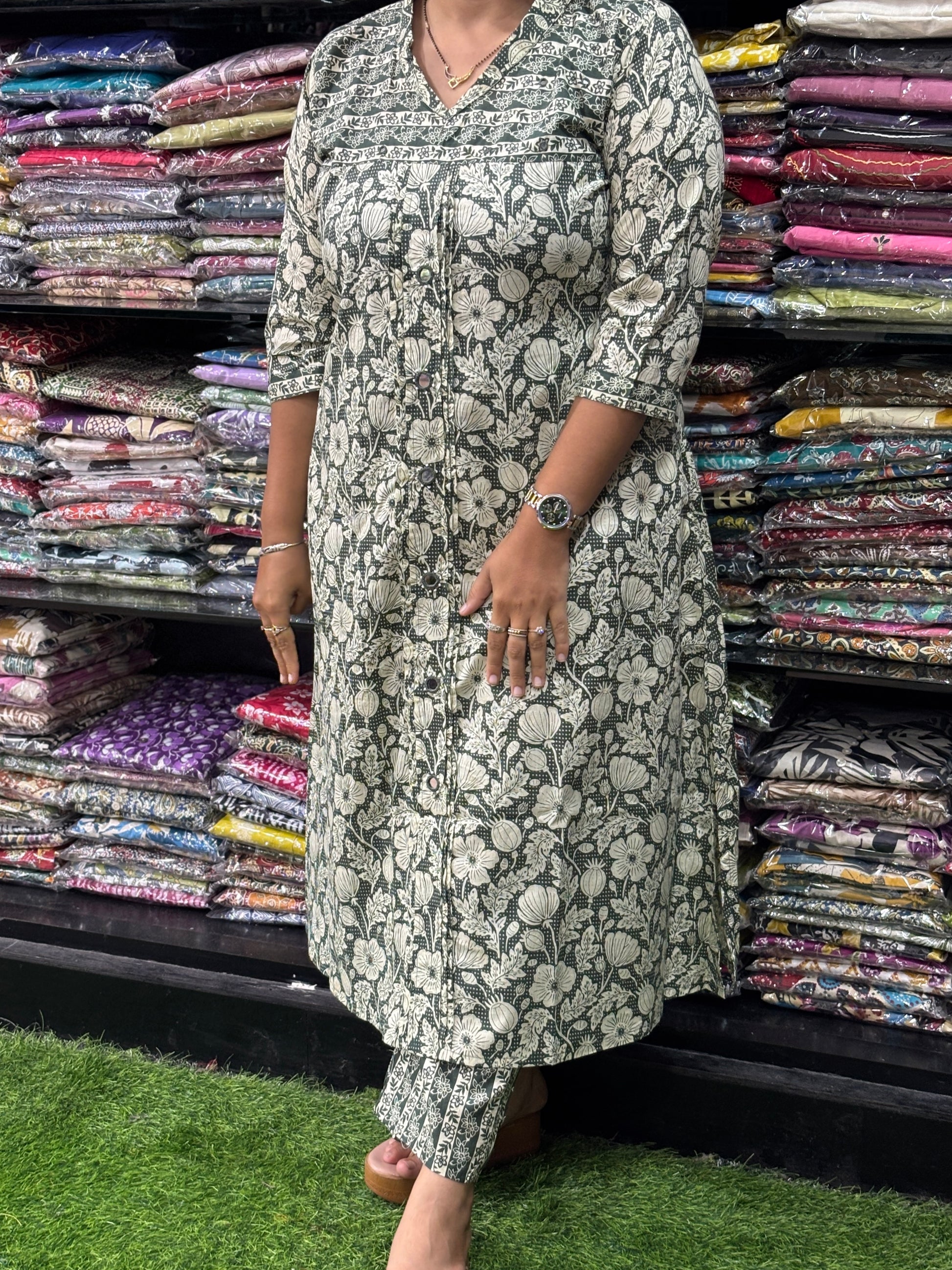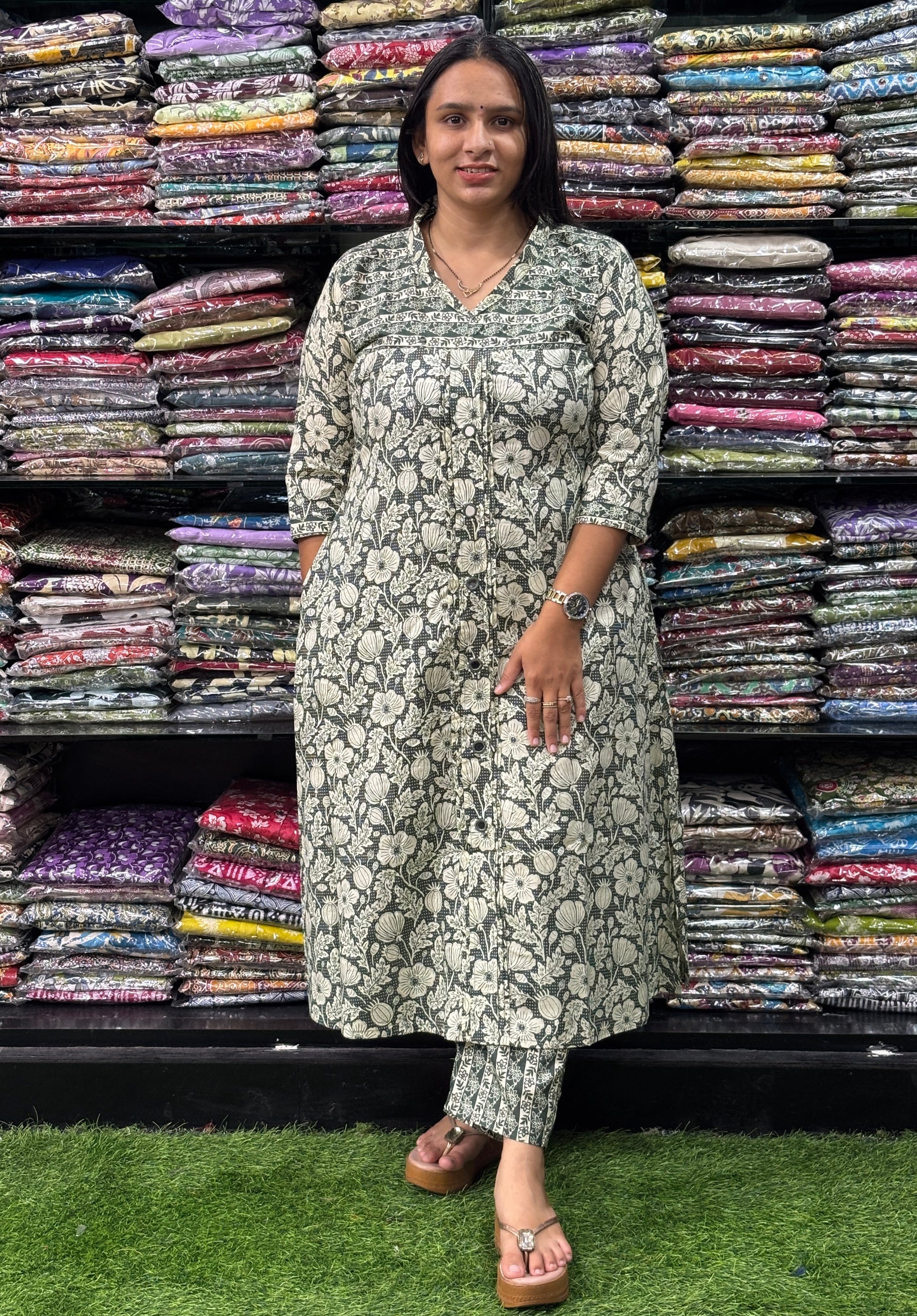 ALINE KURTI-PANT (HANDWORK)(PURE CAMRIC COTTON)