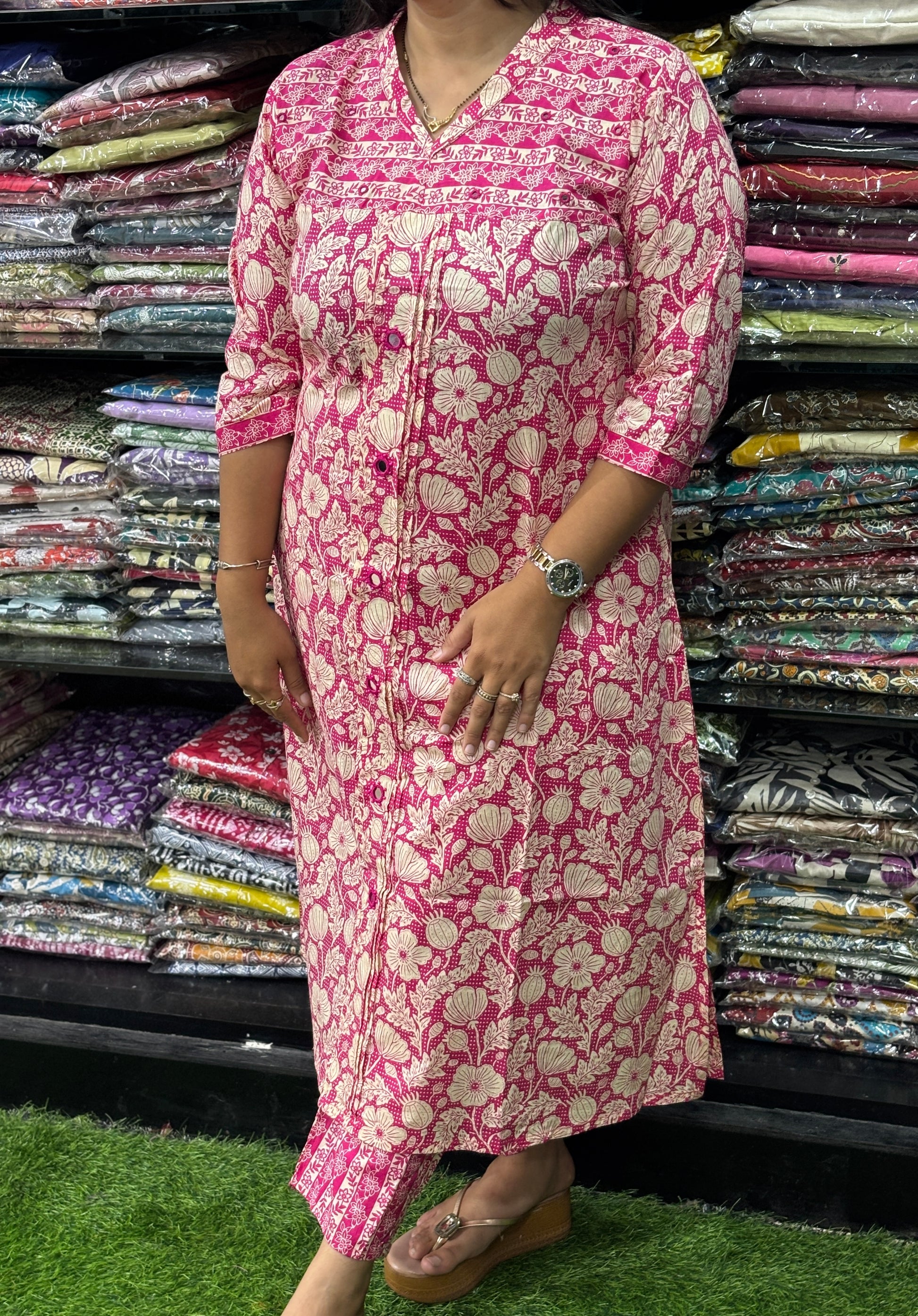 ALINE KURTI-PANT (HANDWORK)(PURE CAMRIC COTTON)