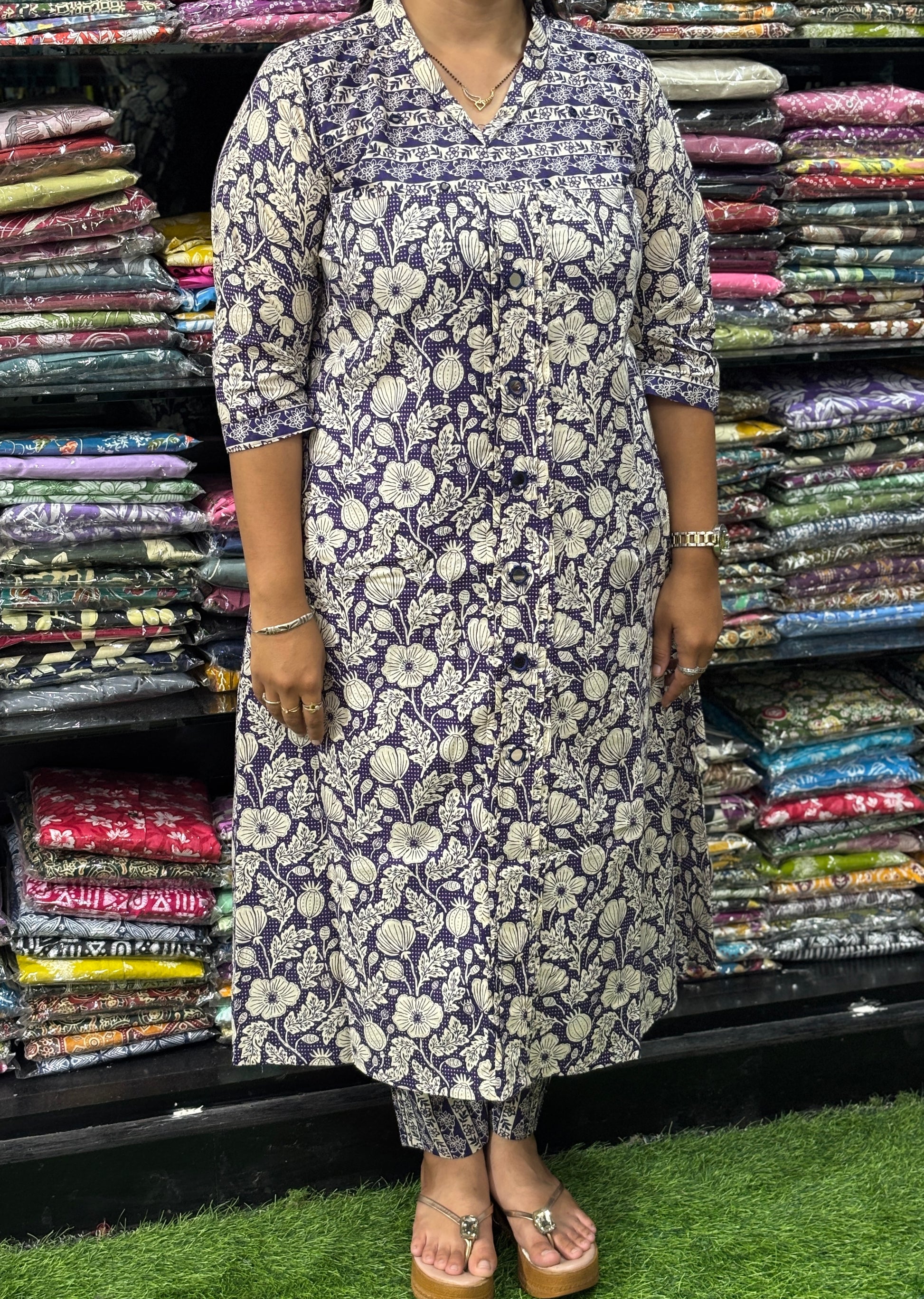 ALINE KURTI-PANT (HANDWORK)(PURE CAMRIC COTTON)