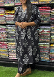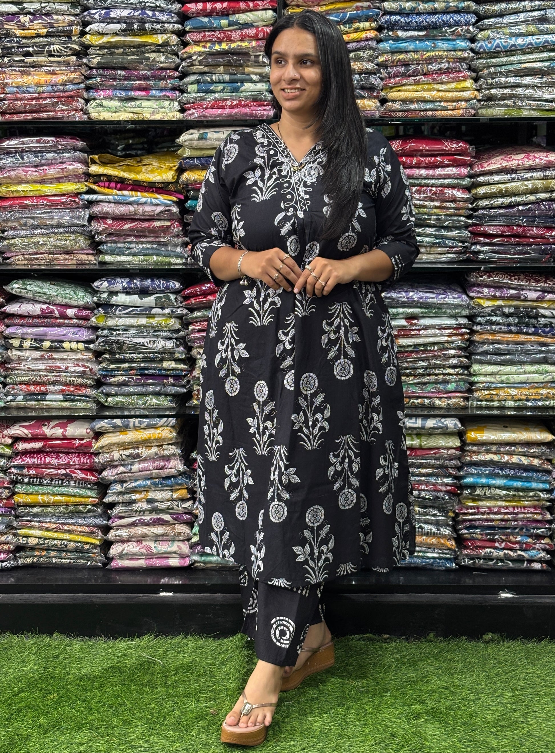 ALINE KURTI-PLAZO (PURE CAMRIC COTTON,V-NECK WORK)