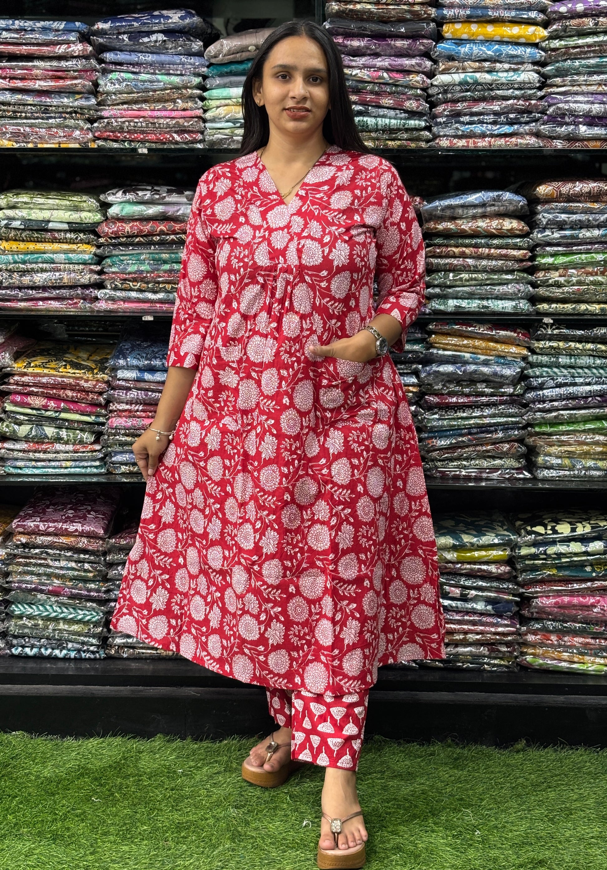 ALINE KURTI-PANT (PURE COTTON,V-NECK)
