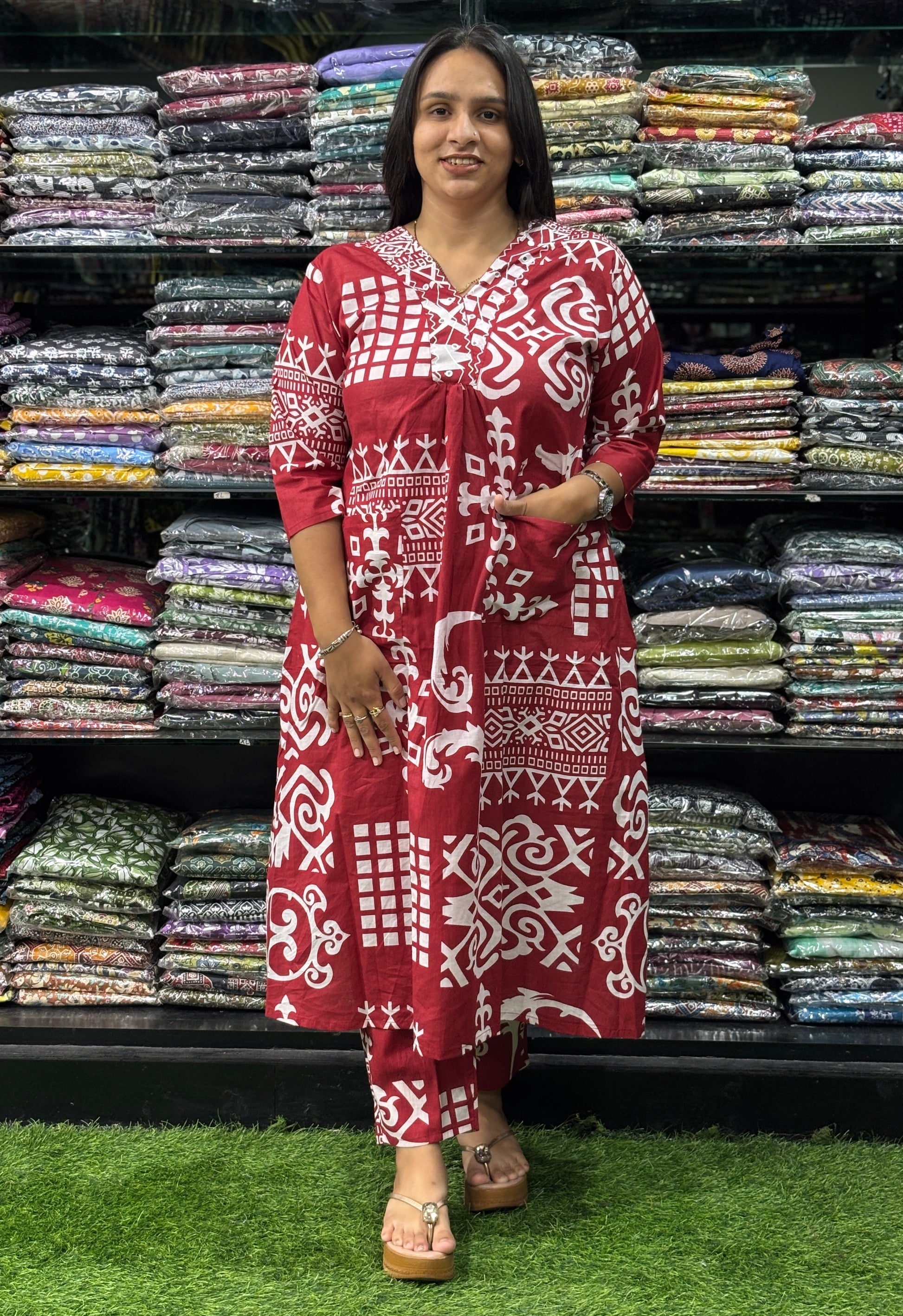 ALINE KURTI-PANT (PURE COTTON,V-NECK,WORK)