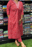 ALINE KURTI-PANT (PURE CAMRIC COTTON,V-NECK WORK)