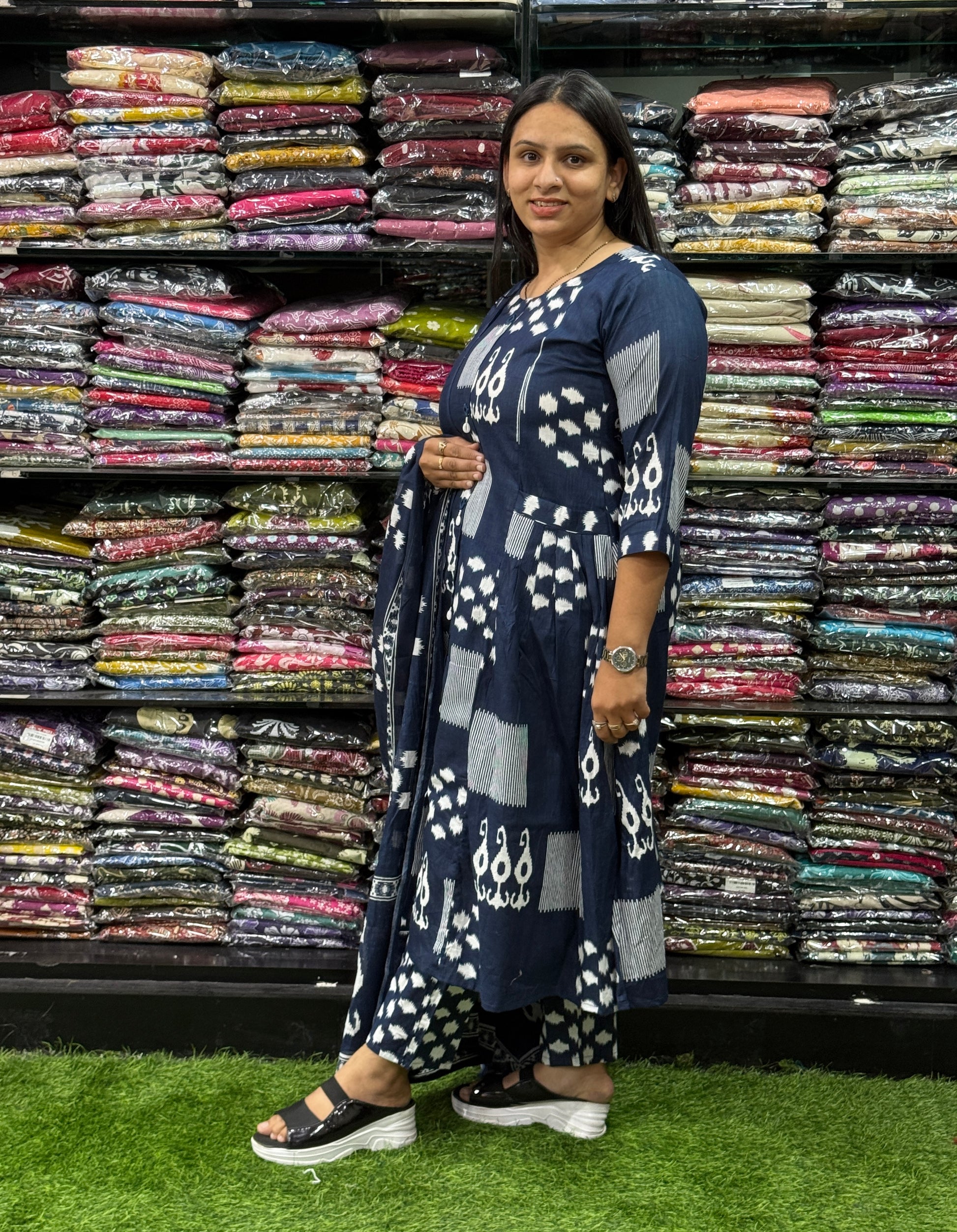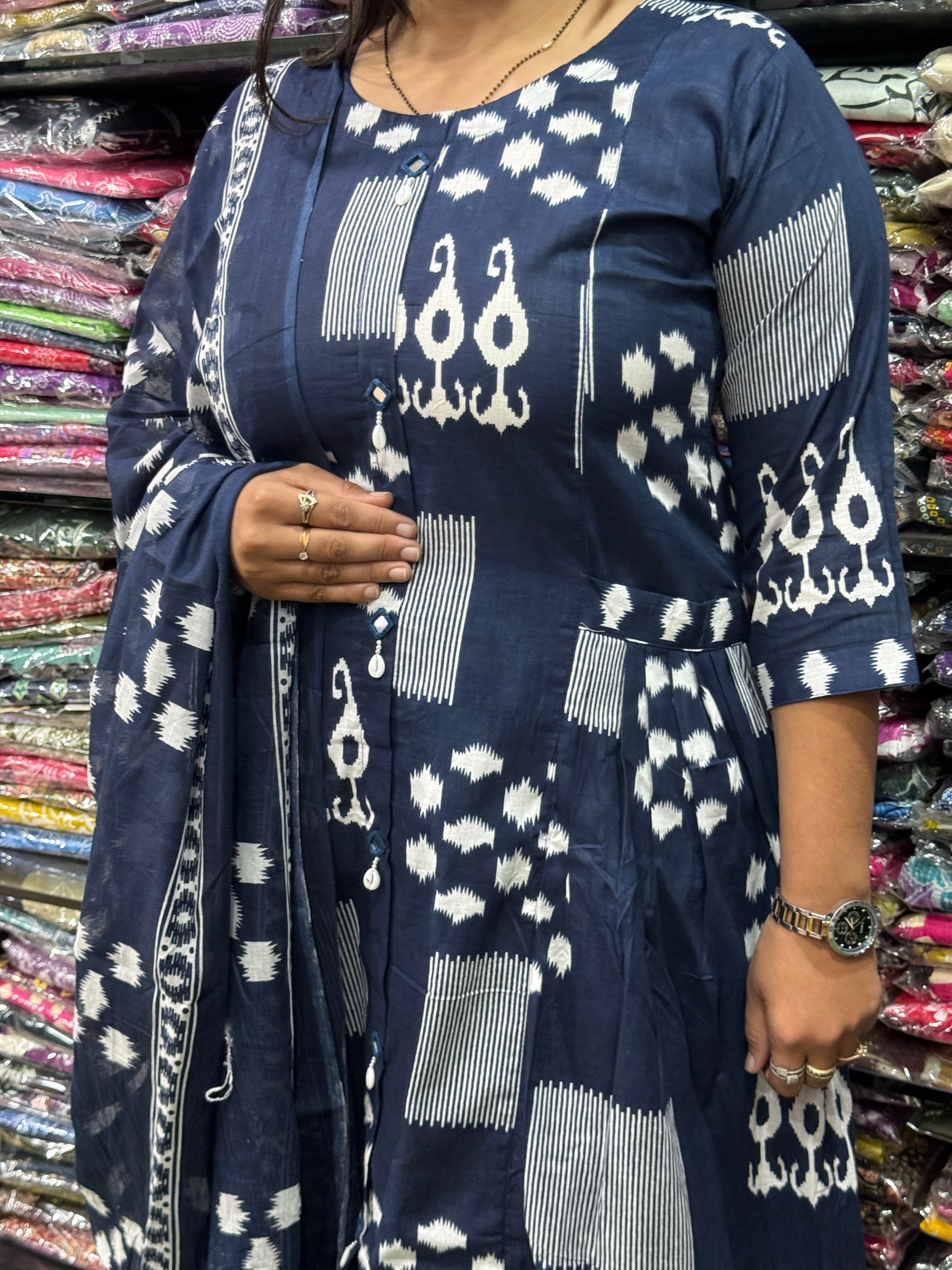 ALINE KURTI PANT WITH DUPATTA (PURE CAMRIC COTTON,HANDWORK)