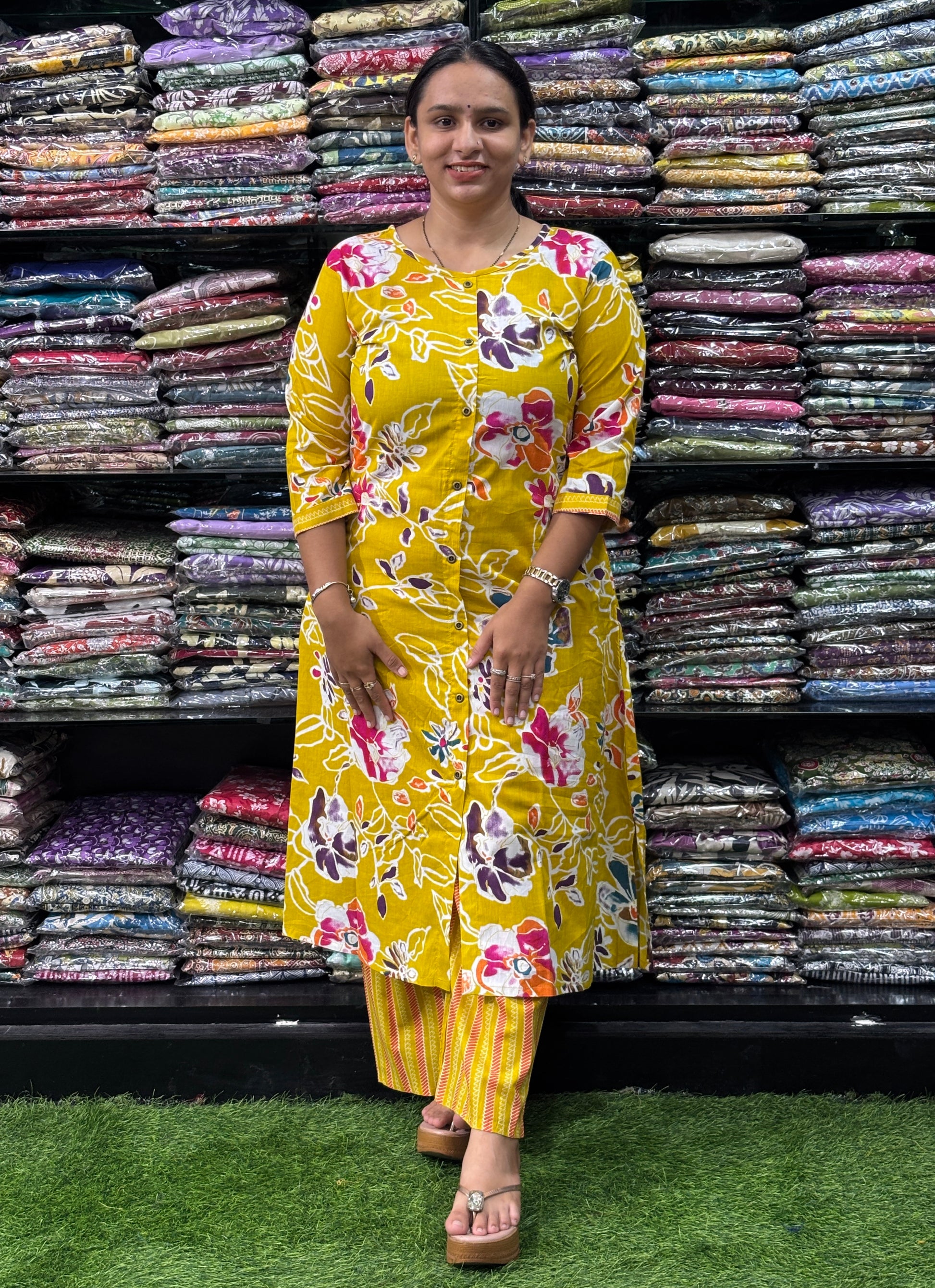 ALINE KURTI-PLAZO (PURE CAMRIC COTTON)