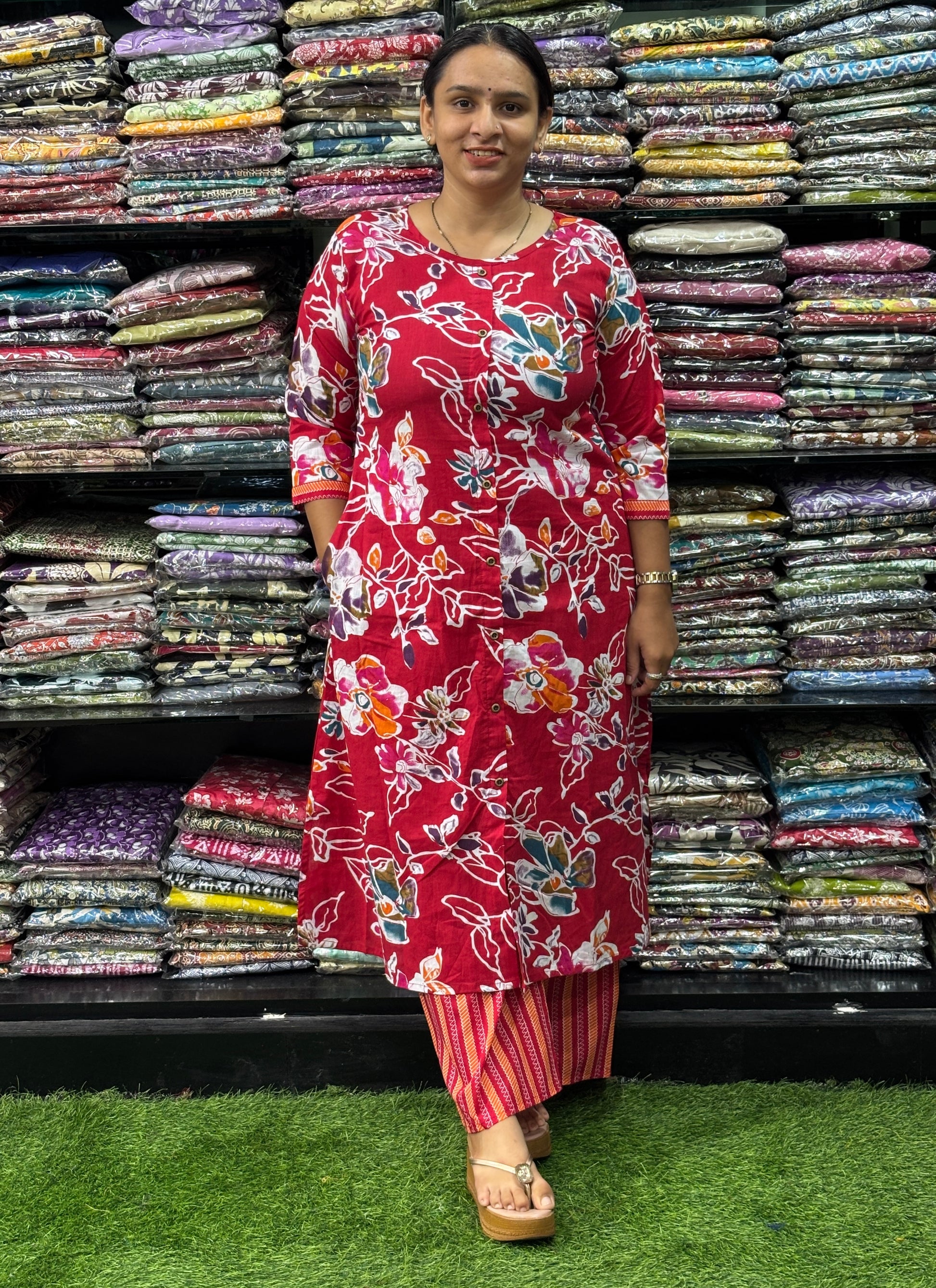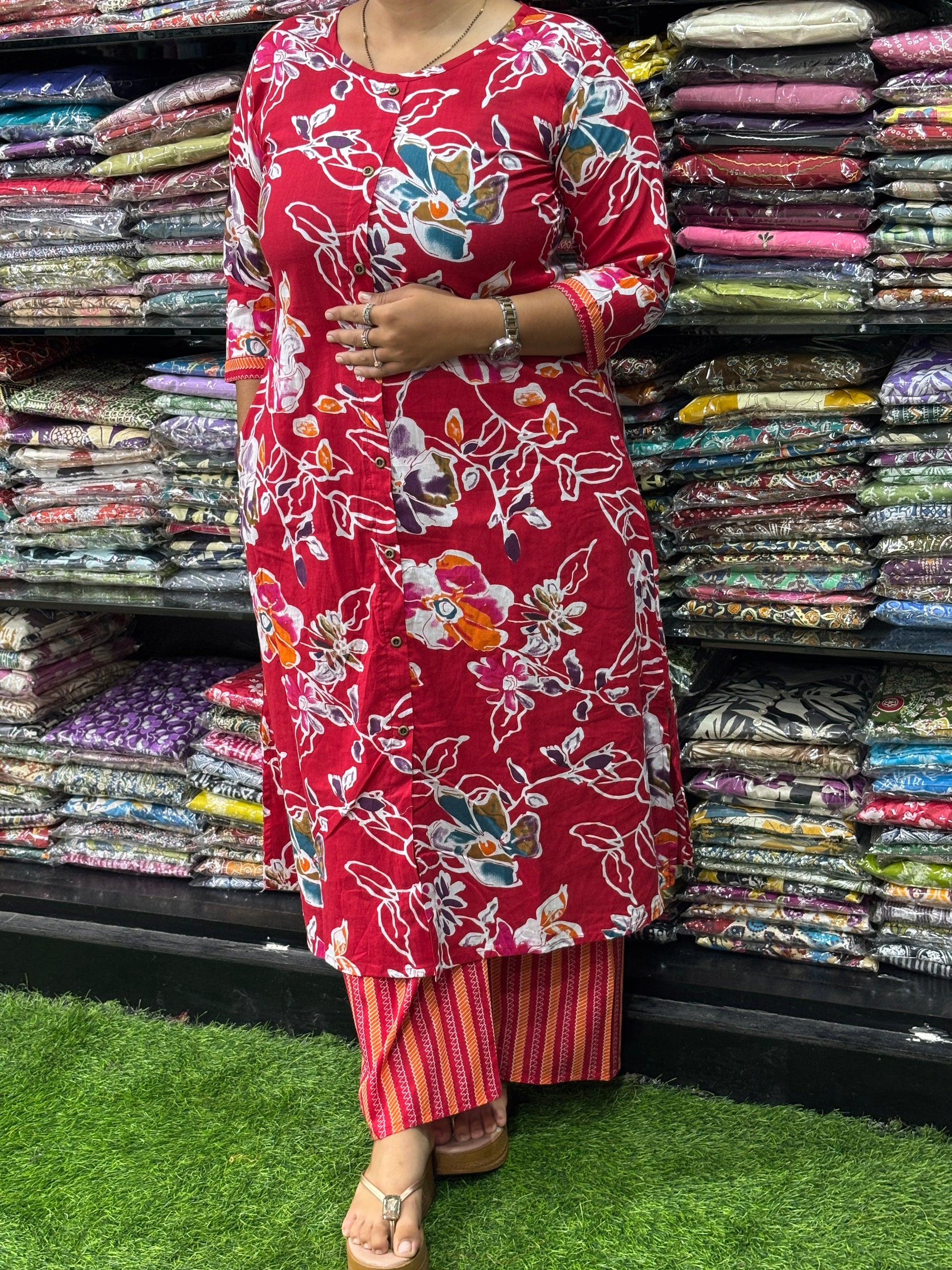 ALINE KURTI-PLAZO (PURE CAMRIC COTTON)