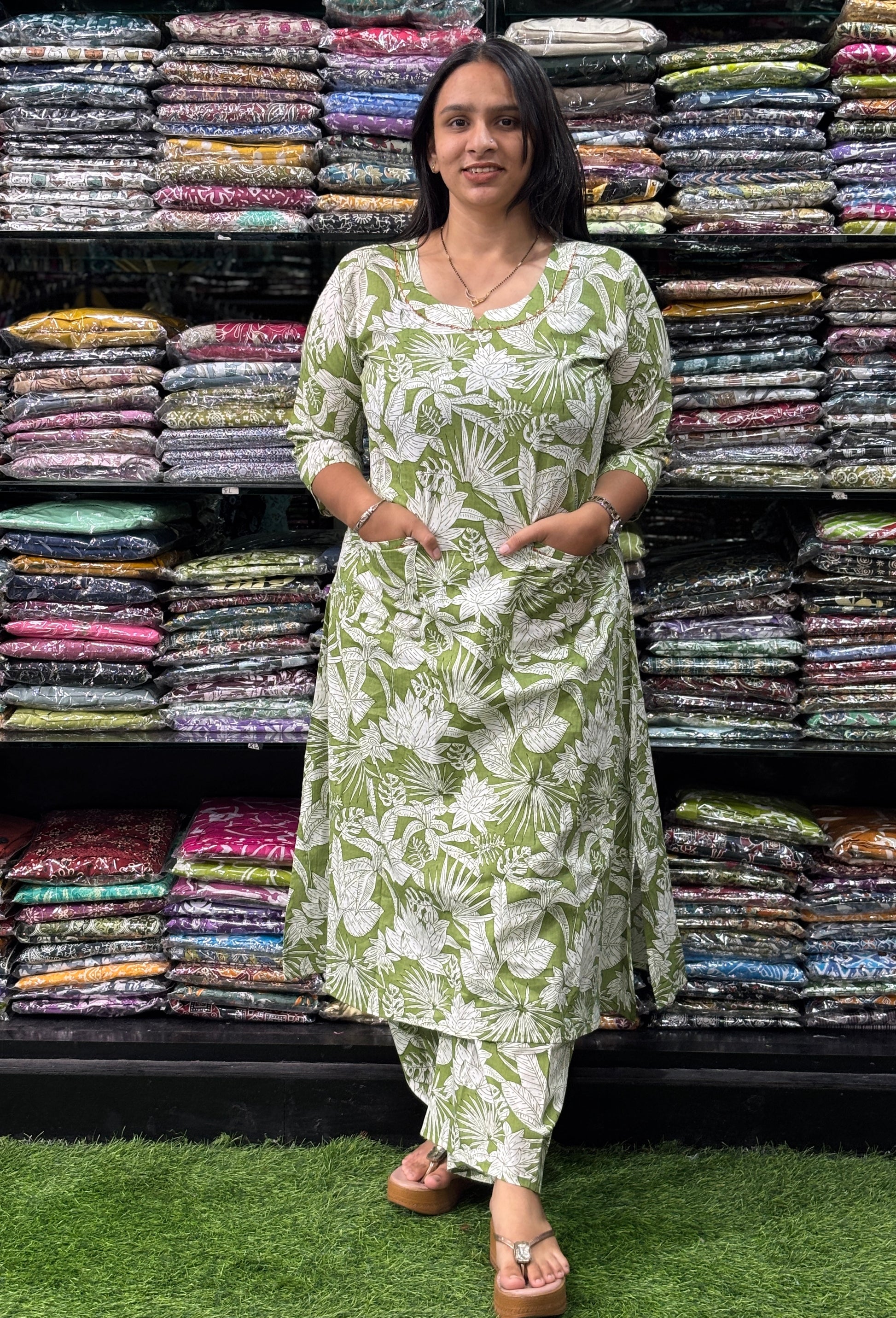 ALINE KURTI-PLAZO (PURE CAMRIC COTTON)