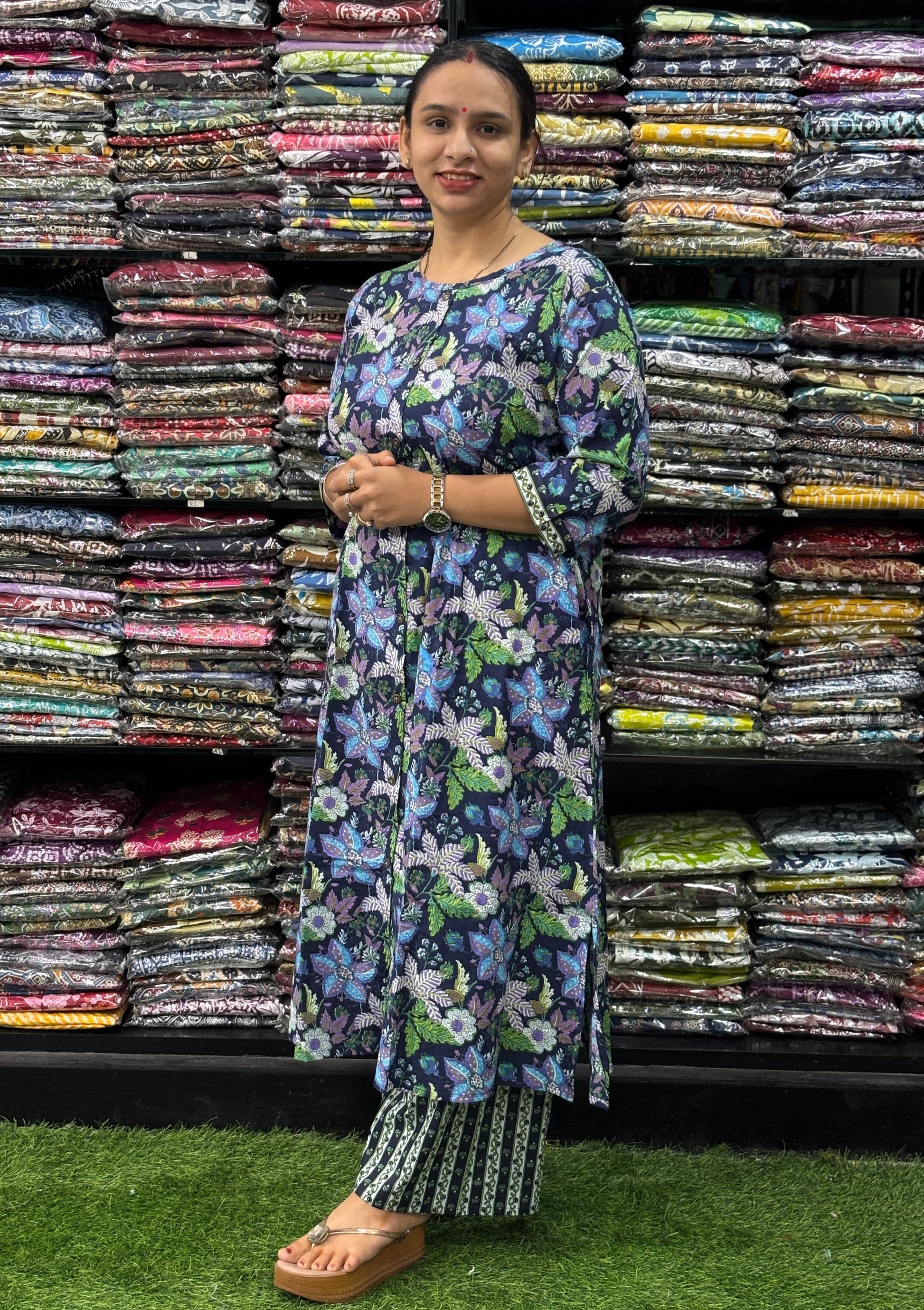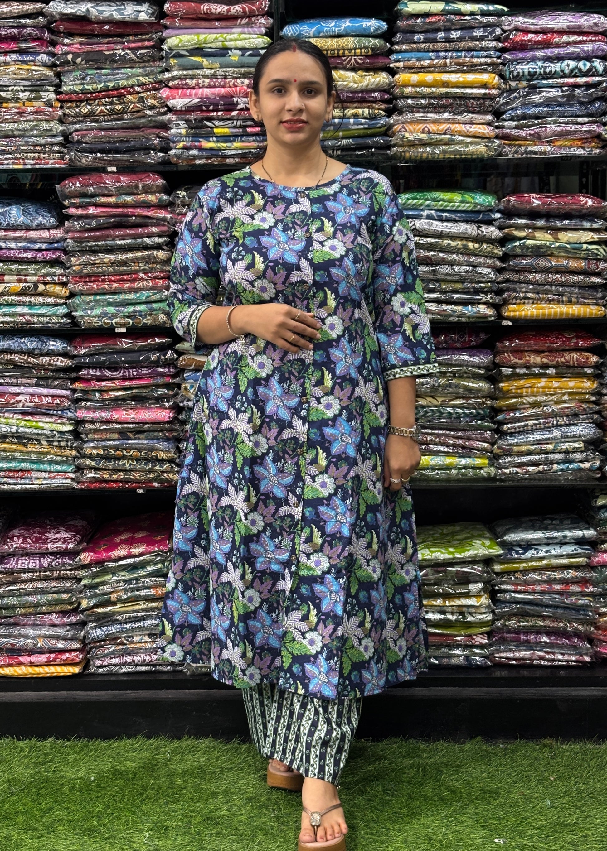 ALINE KURTI-PLAZO (PURE COTTON,ROUND NECK)