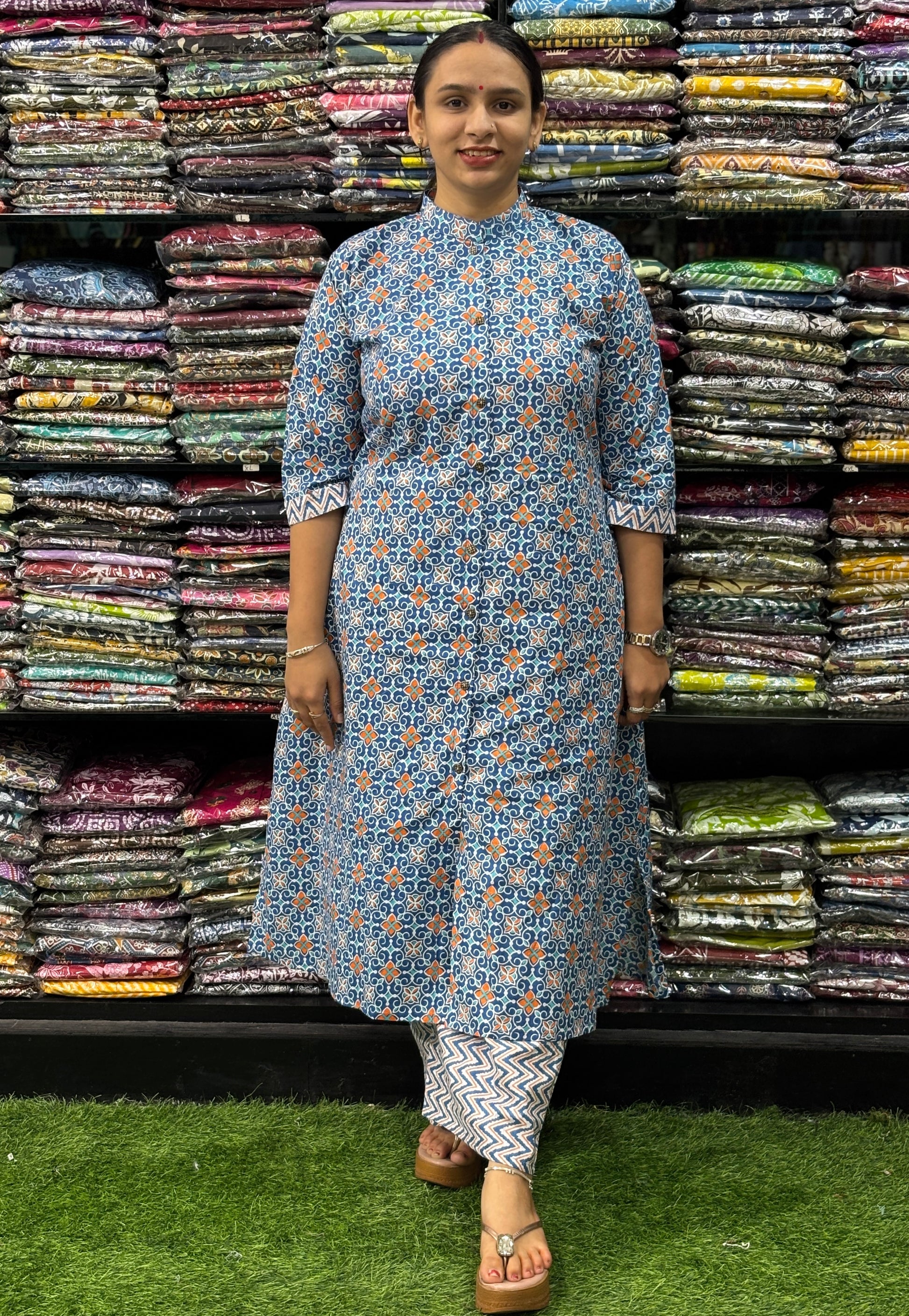 ALINE KURTI-PLAZO (PURE COTTON,CHINESE NECK)