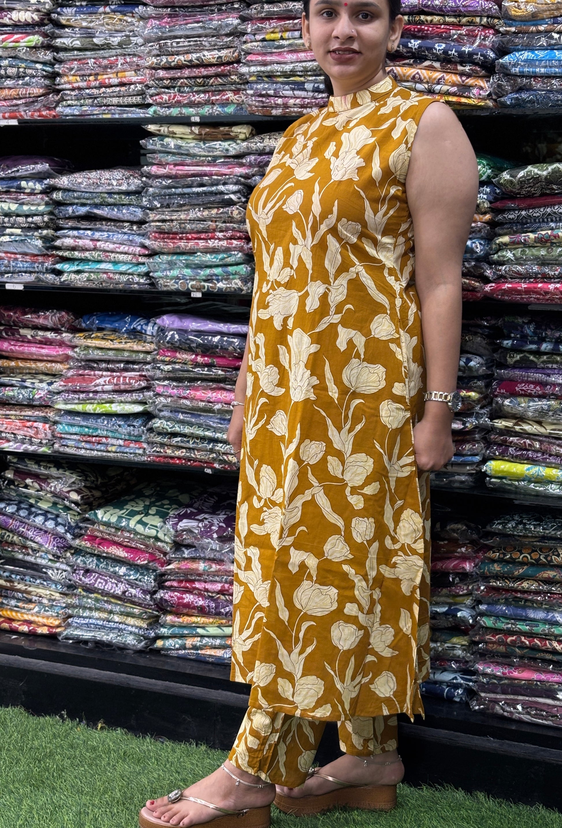 ALINE KURTI-PLAZO (PURE COTTON,ROUND NECK)