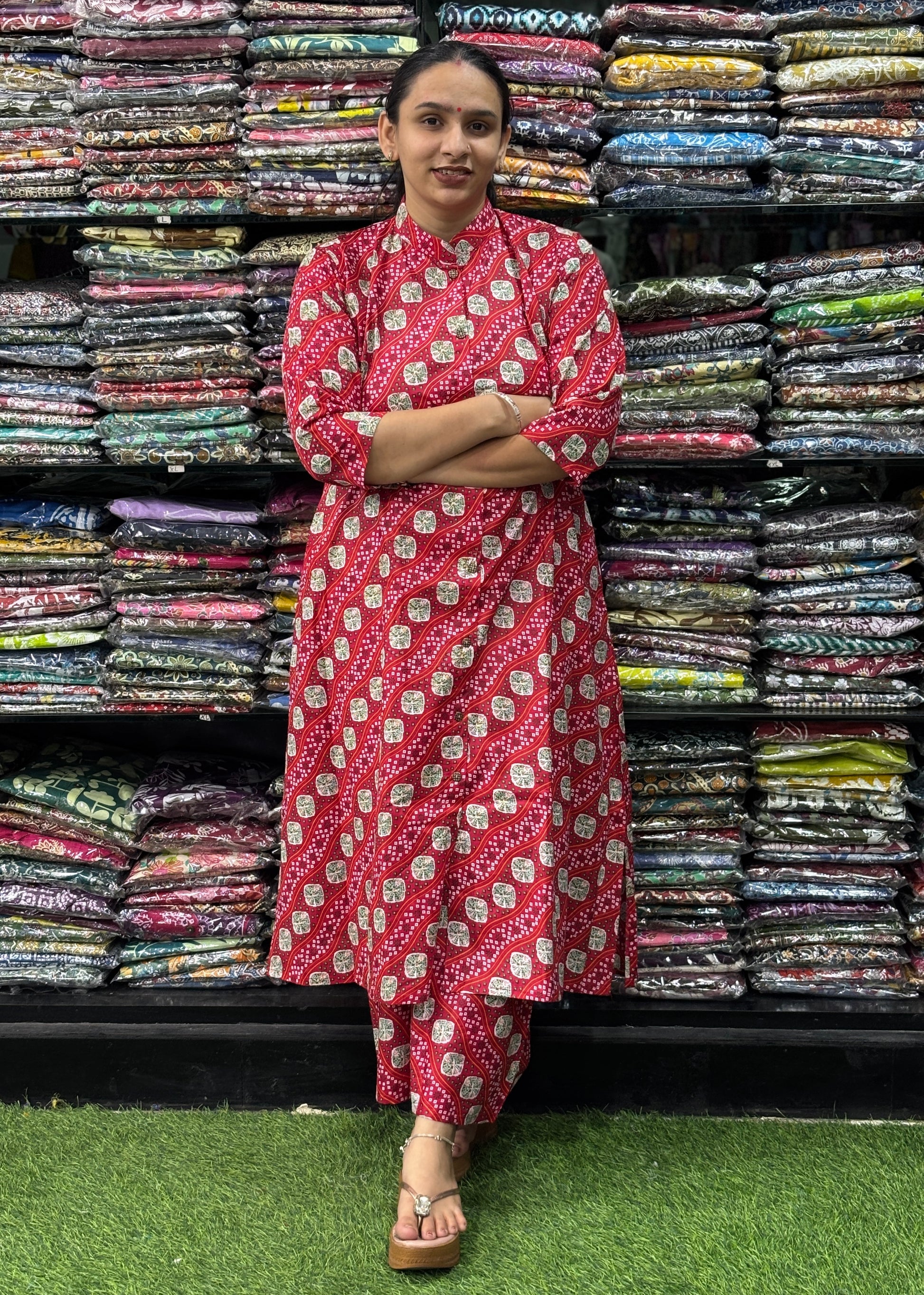 ALINE KURTI-PLAZO (PURE COTTON,CHINESE NECK)