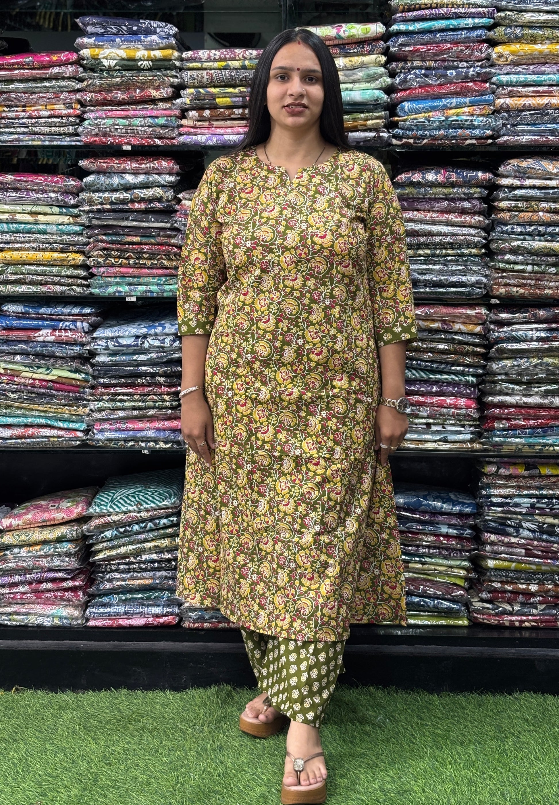 ALINE KURTI-PLAZO (PURE COTTON,ROUND NECK)