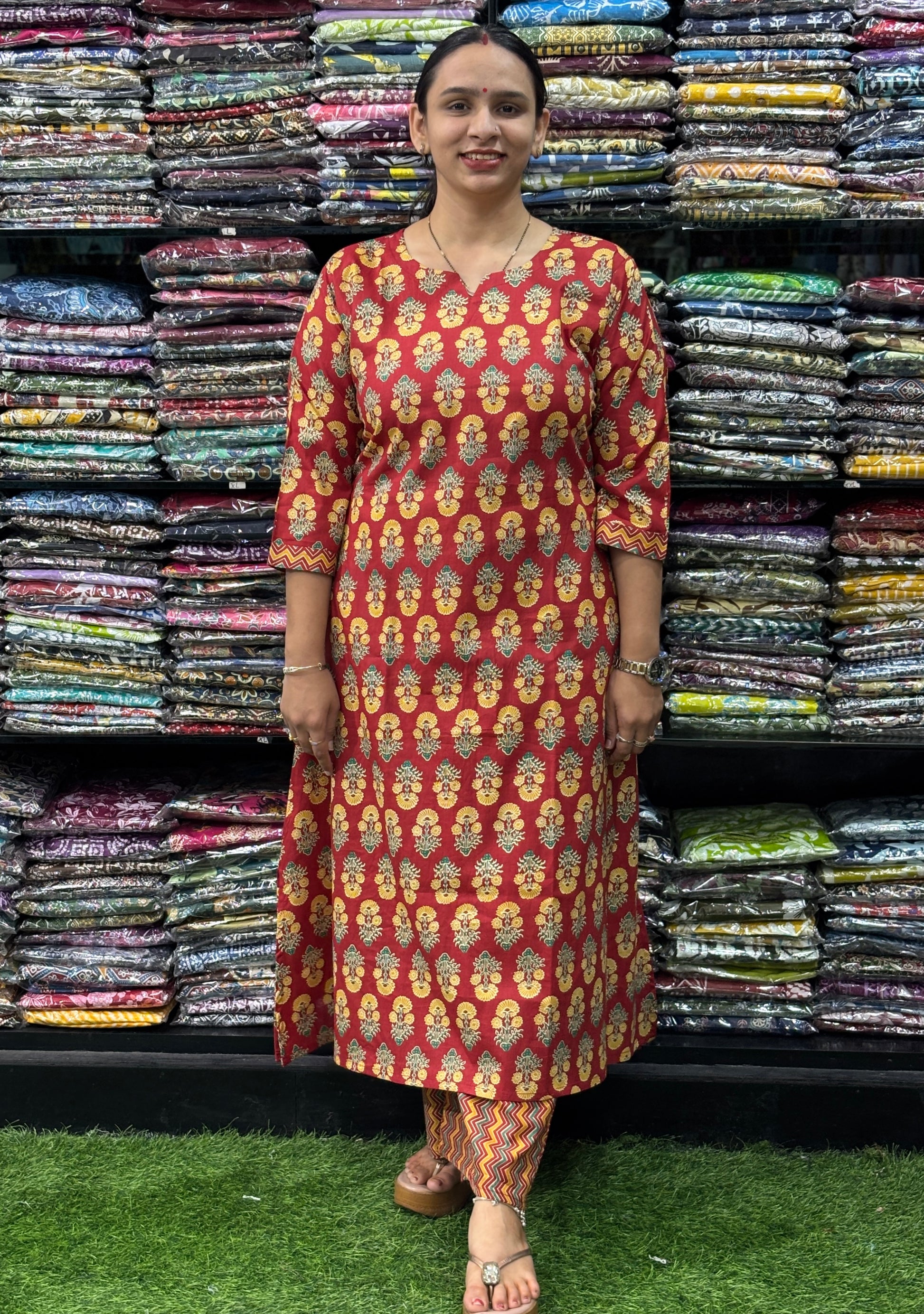 ALINE KURTI-PLAZO (PURE COTTON,ROUND NECK)