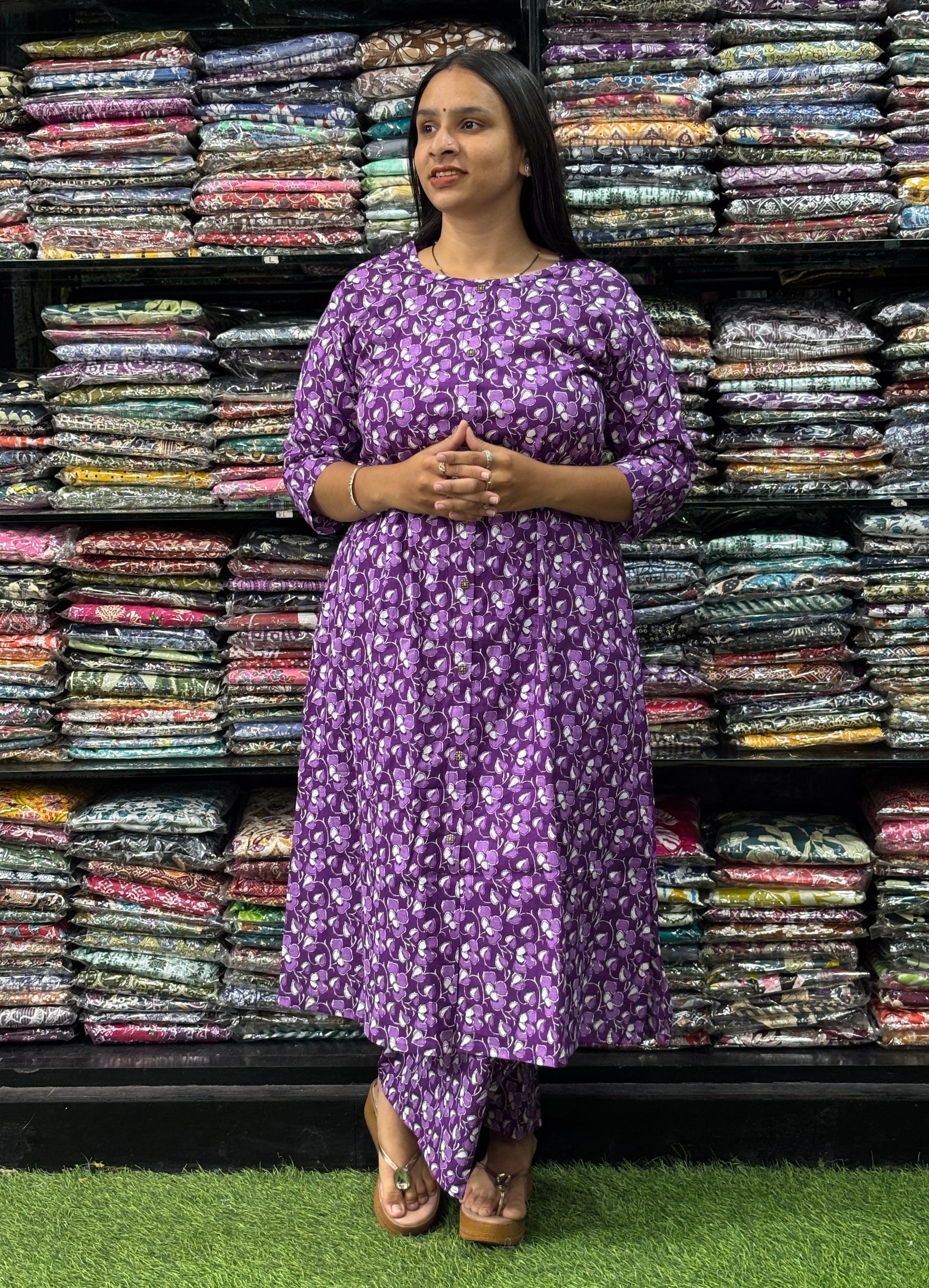 ALINE KURTI-PLAZO (PURE COTTON,ROUND NECK)