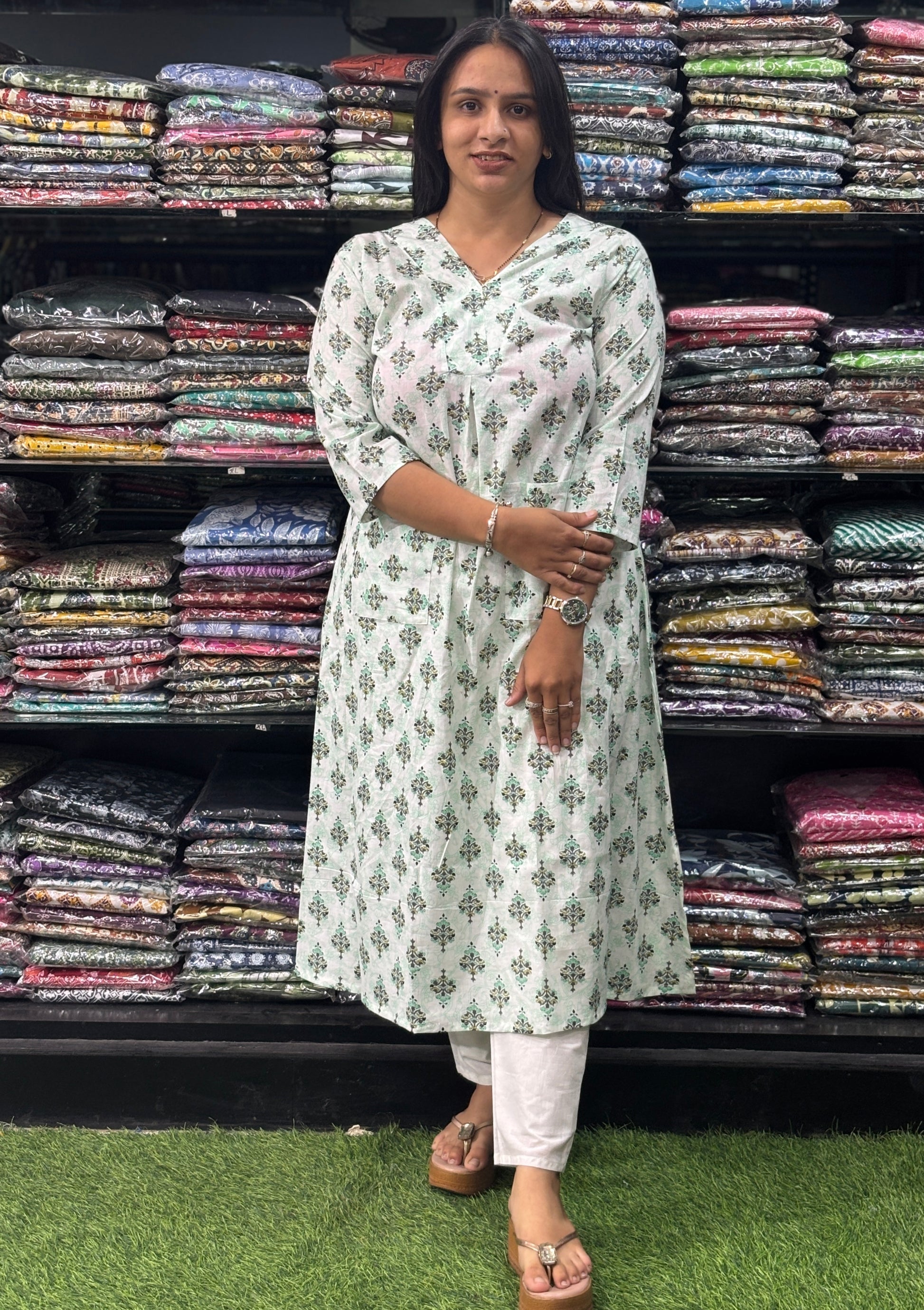 ALINE KURTI (PURE COTTON,V-NECK)