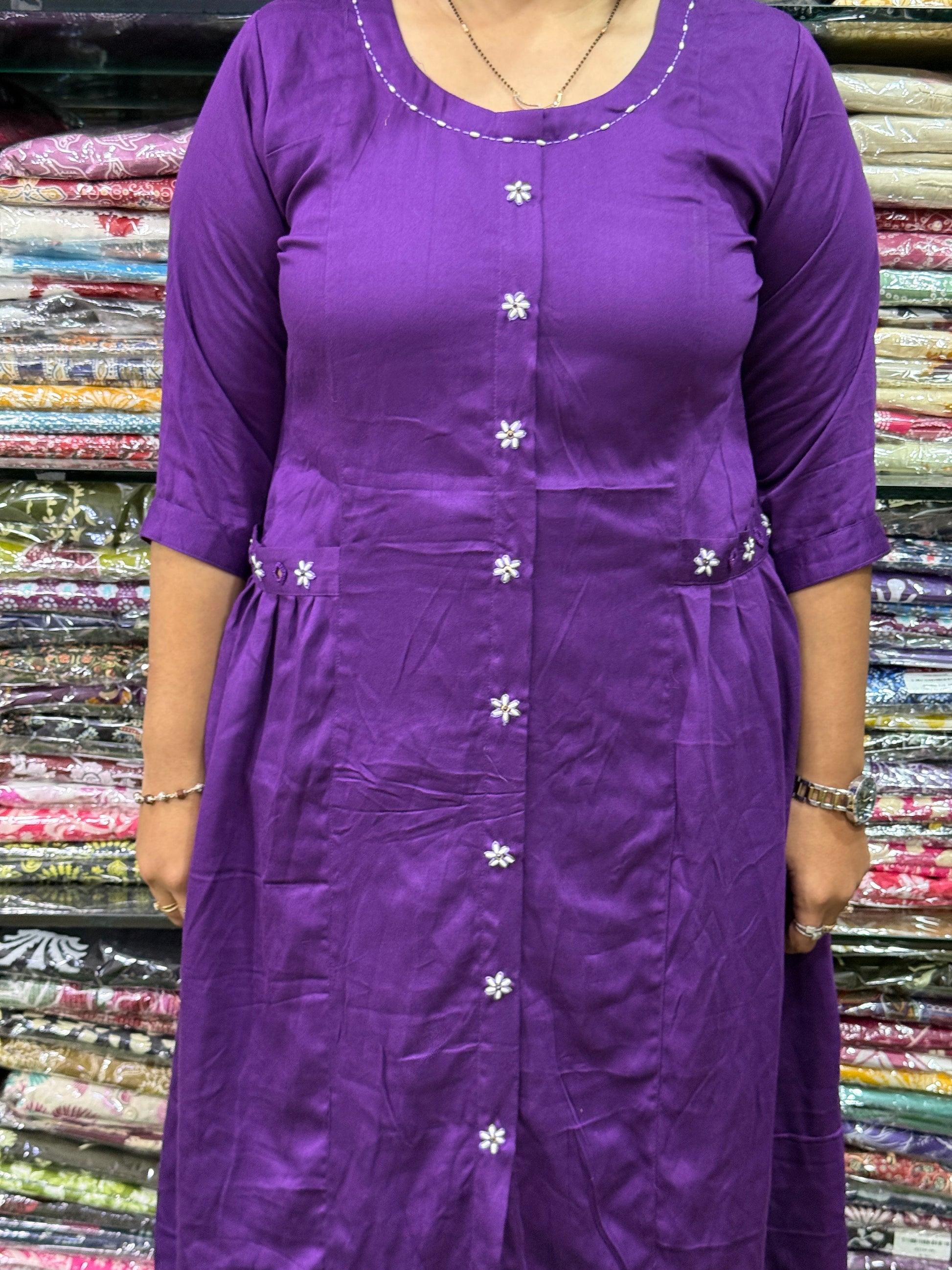 ALINE KURTI WITH PANT (GAJI SILK,HANDWORK)