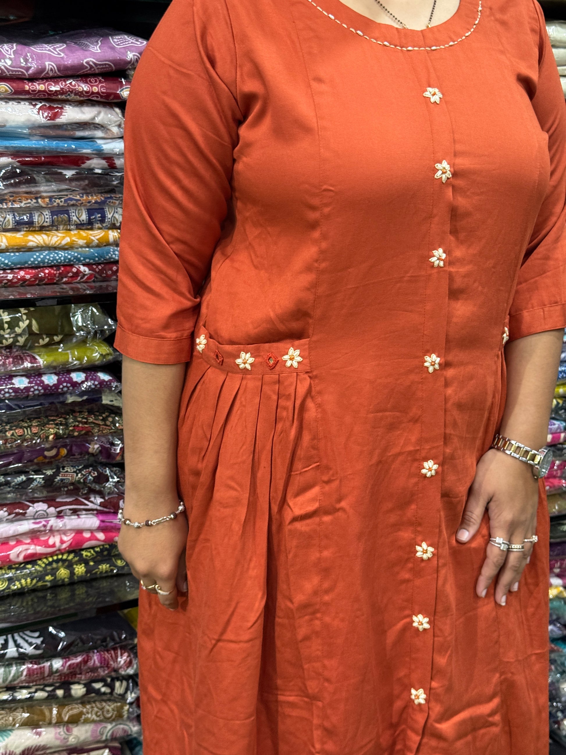 ALINE KURTI WITH PANT (GAJI SILK,HANDWORK)