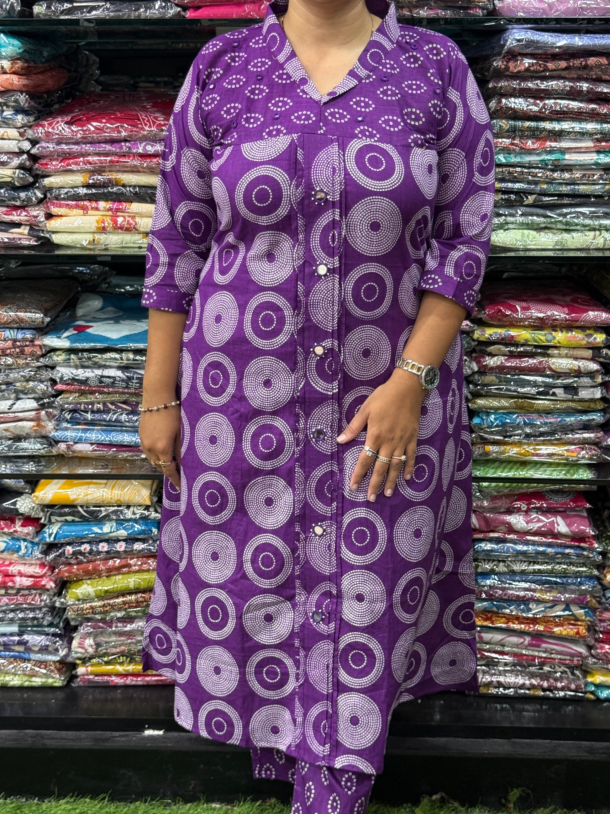 ALINE KURTI WITH PANT ( PURE CAMRIC COTTON,WITH WORK)
