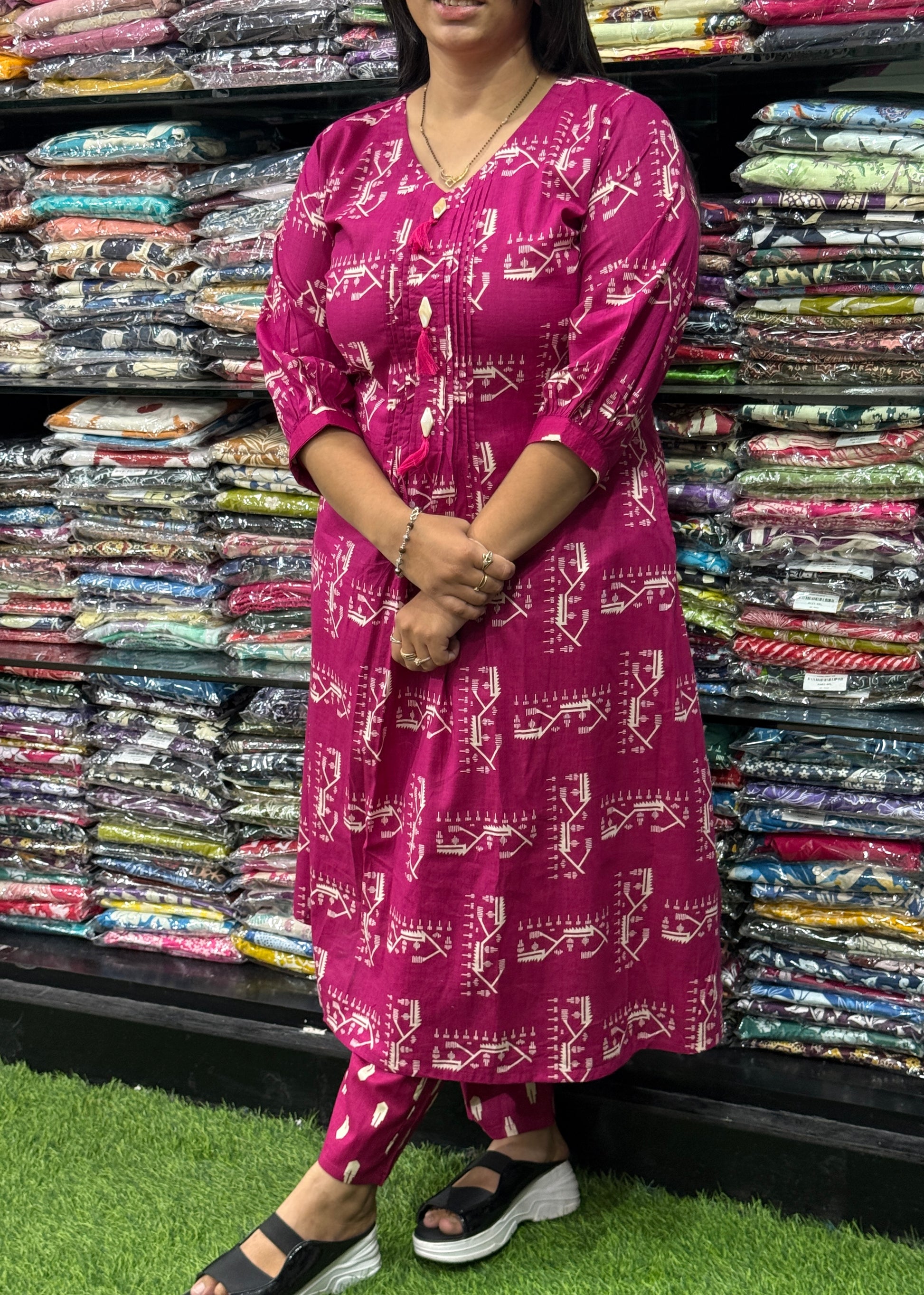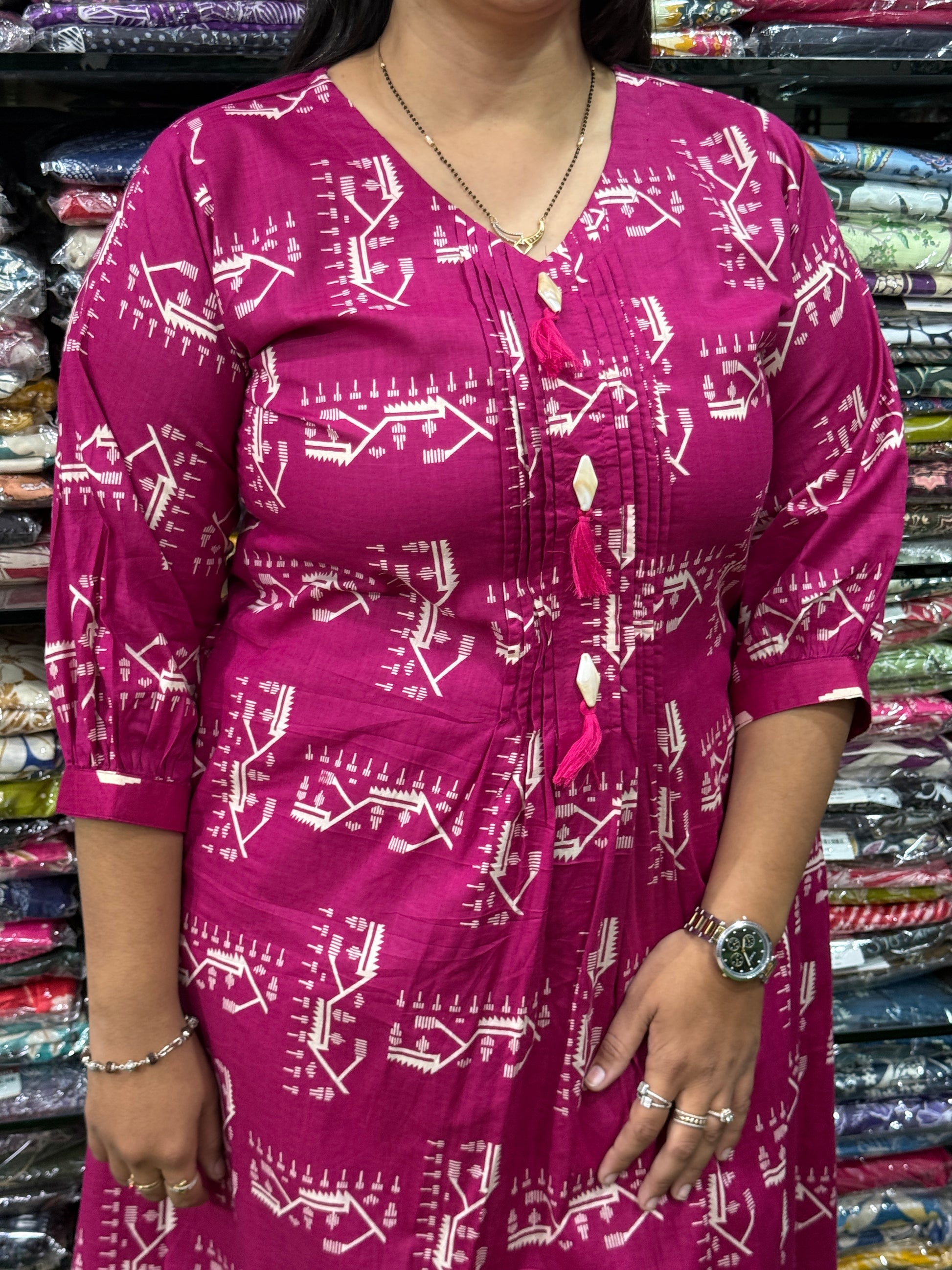 ALINE KURTI WITH PENT(PURE CAMRIC COTTON)