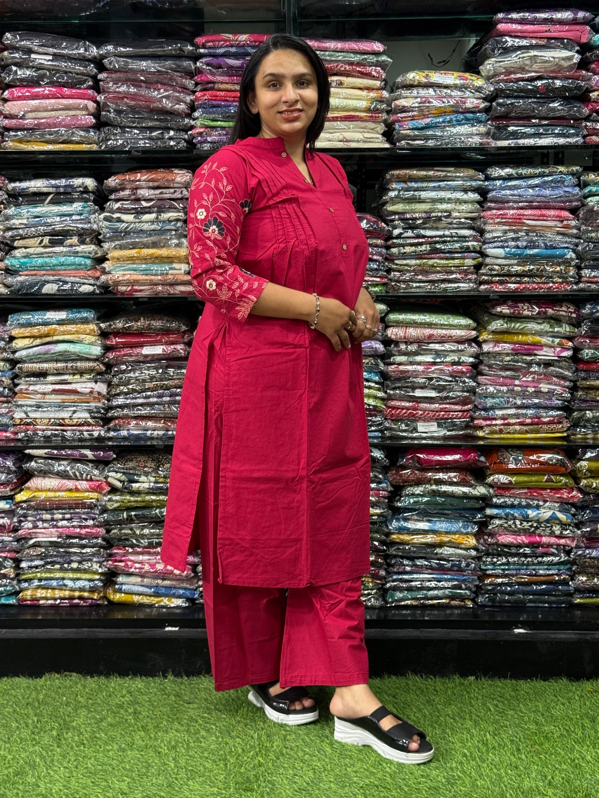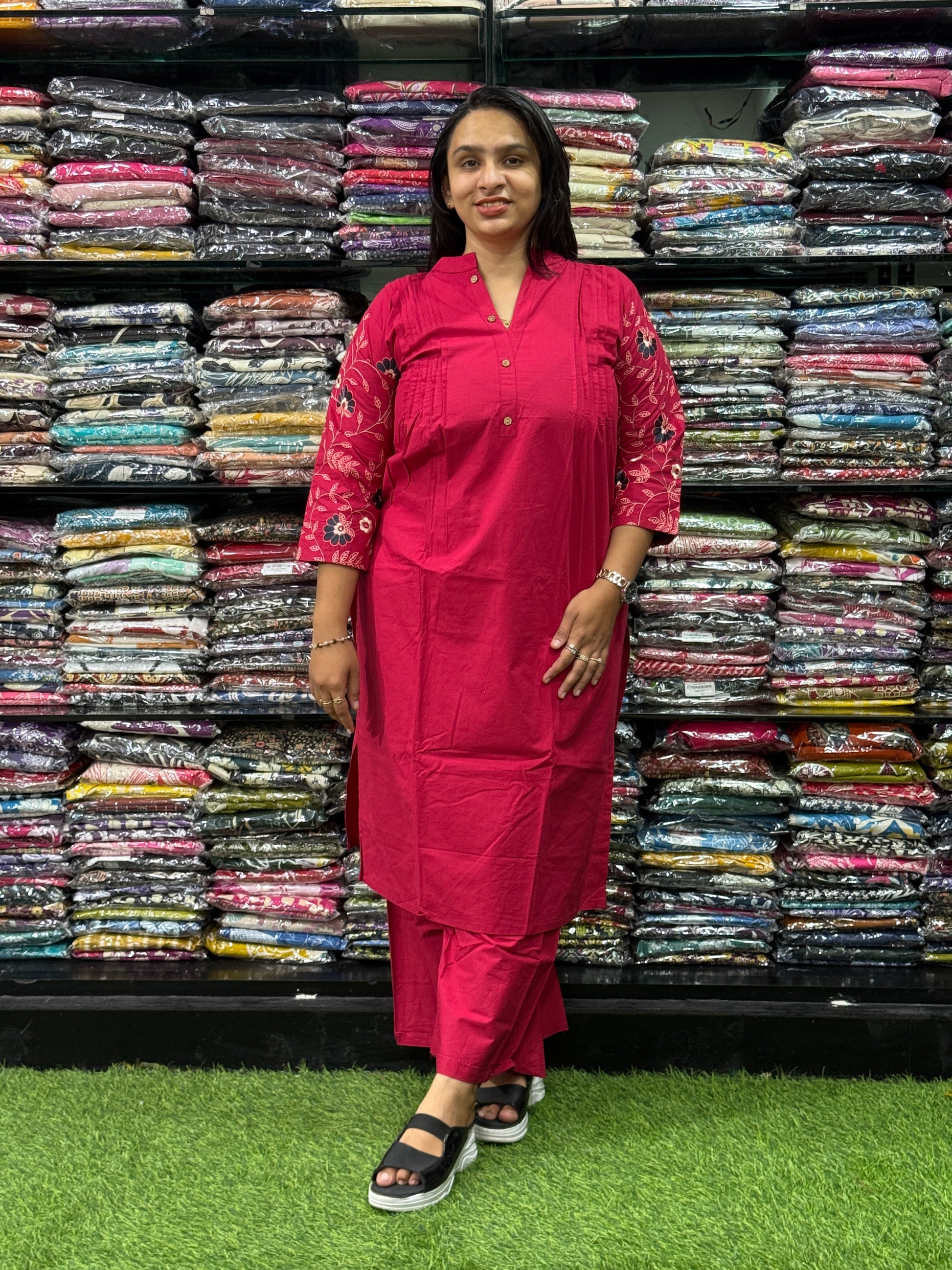 ALINE KURTI WITH PLAZO(PURE CAMRIC COTTON,WITH WORK)