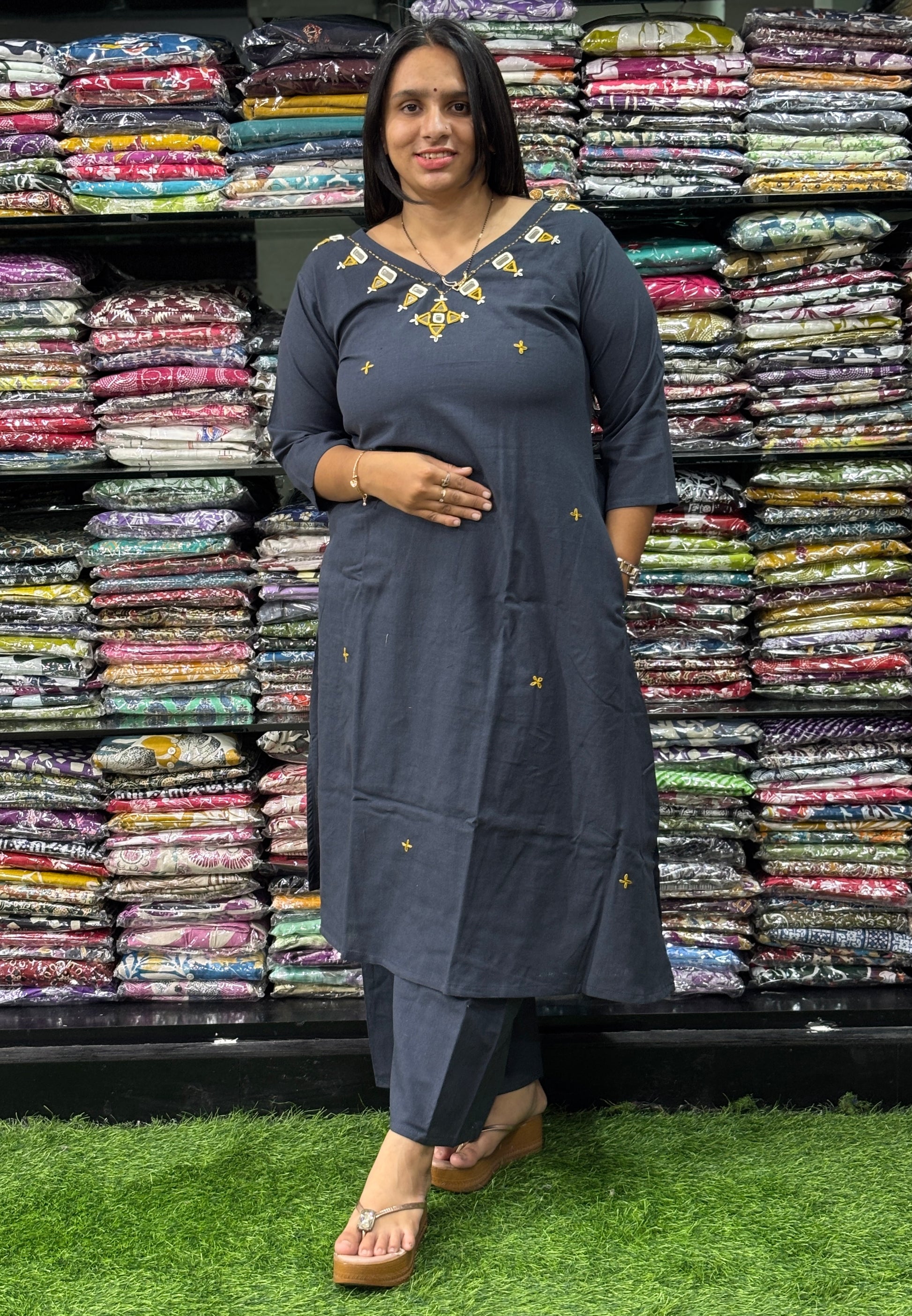 ALINE KURTI WITH PLAZO (FLEX COTTON,HAND MIRROR WORK)