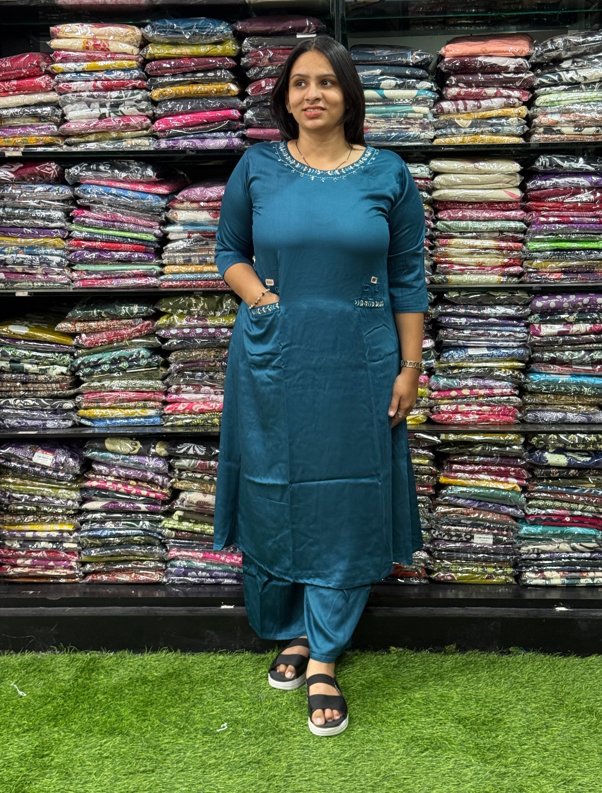 ALINE KURTI WITH PLAZO (GAJI SILK,HANDWORK)
