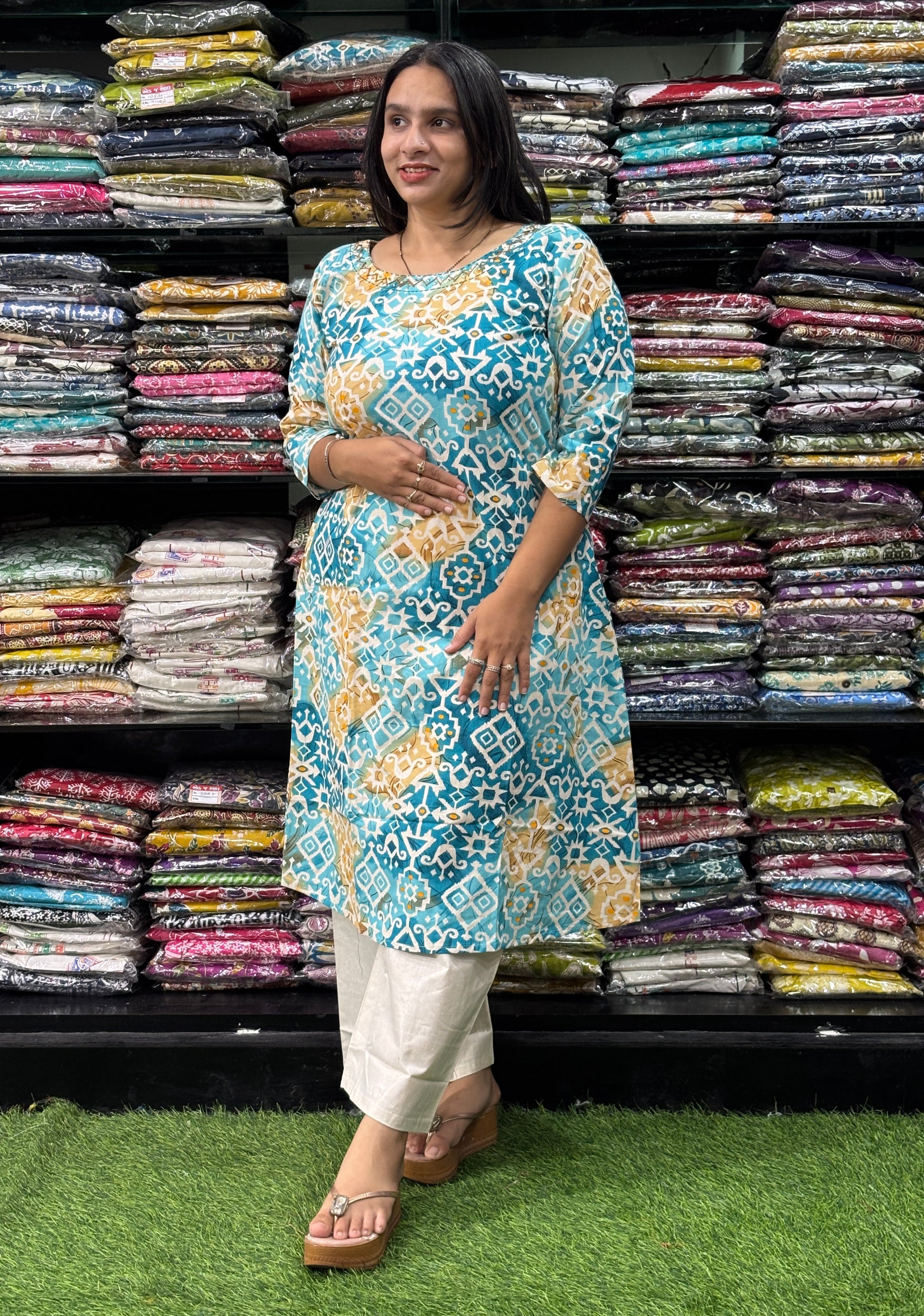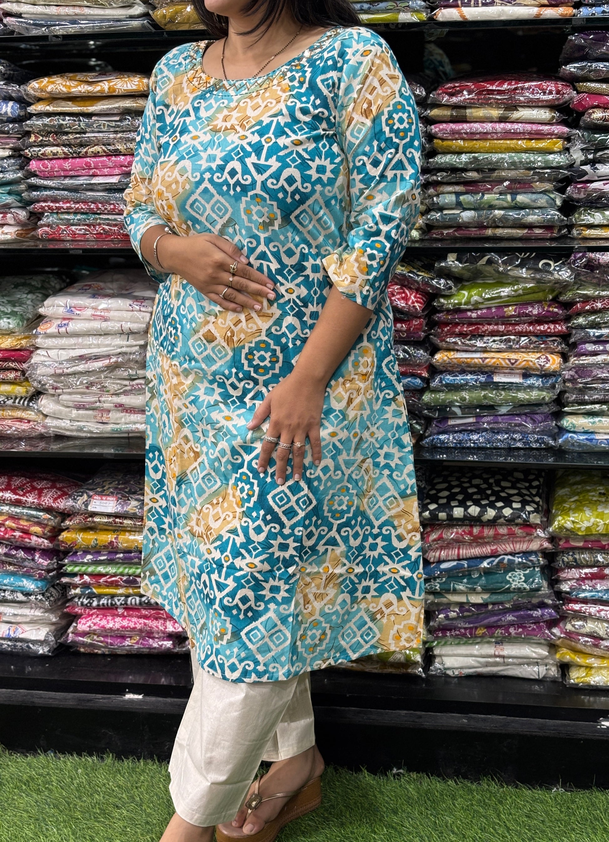ALINE KURTI WITH PLAZO (KHADI COTTON,WITH WORK)