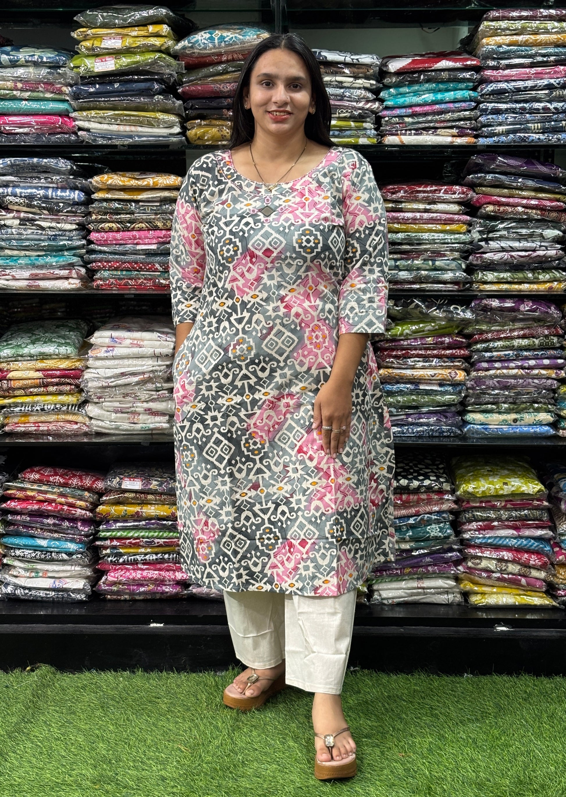ALINE KURTI WITH PLAZO (KHADI COTTON,WITH WORK)