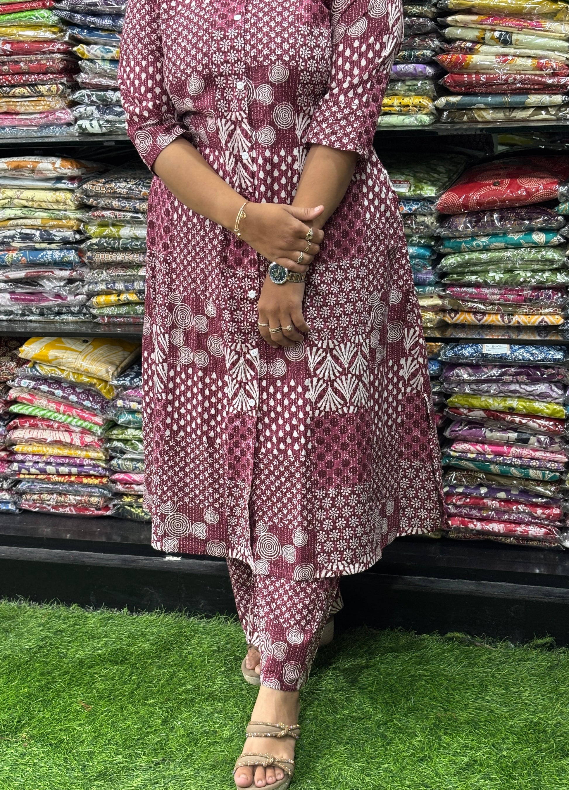 ALINE KURTI WITH PLAZO (PURE CAMRIC COTTON)