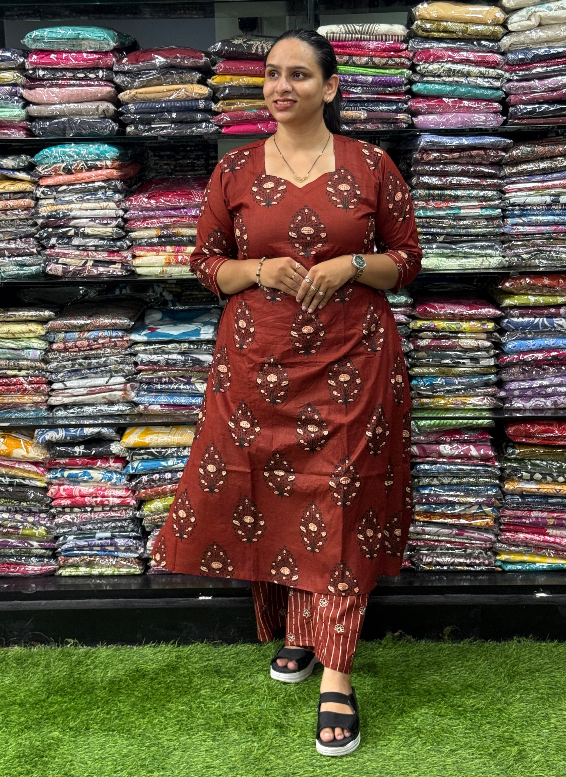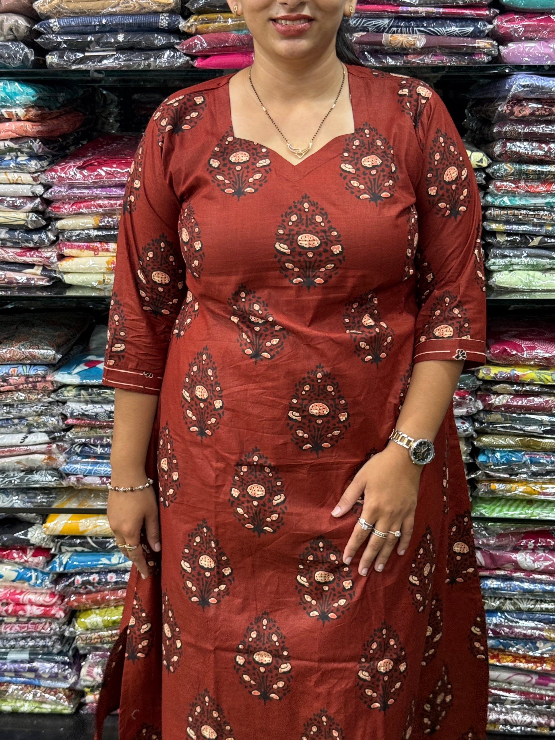 ALINE KURTI WITH PLAZO ( PURE CAMRIC COTTON)