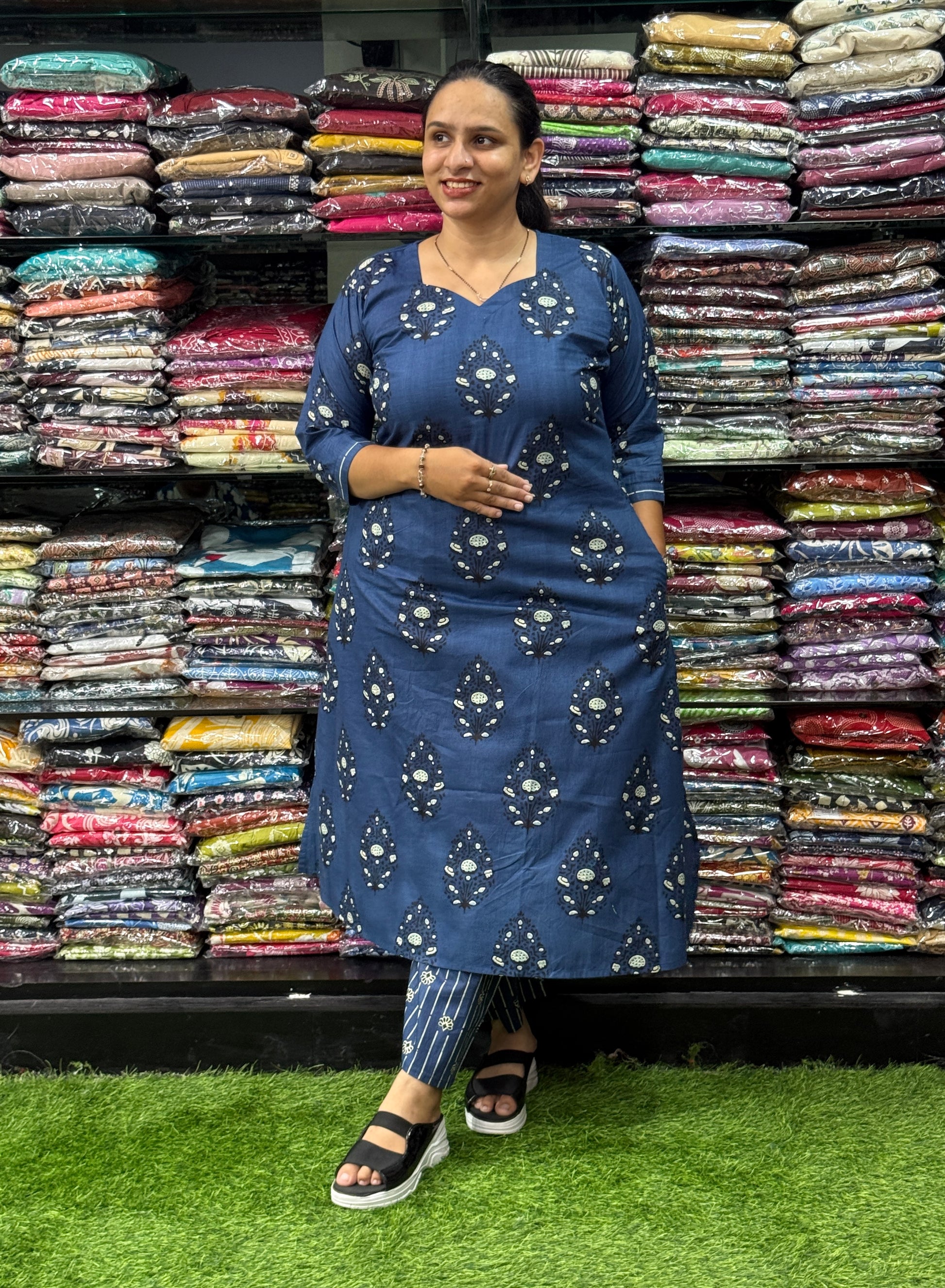 ALINE KURTI WITH PLAZO ( PURE CAMRIC COTTON)