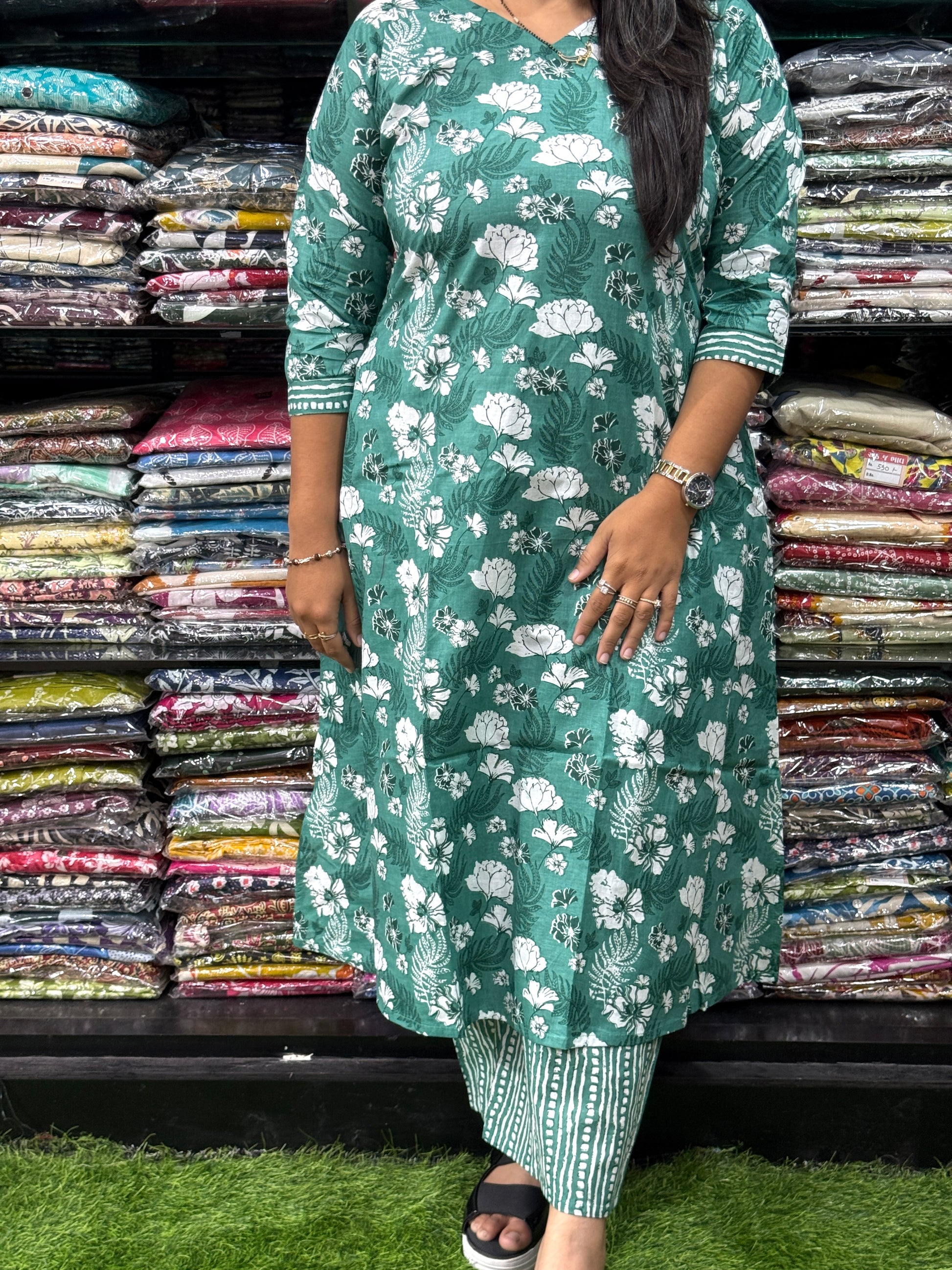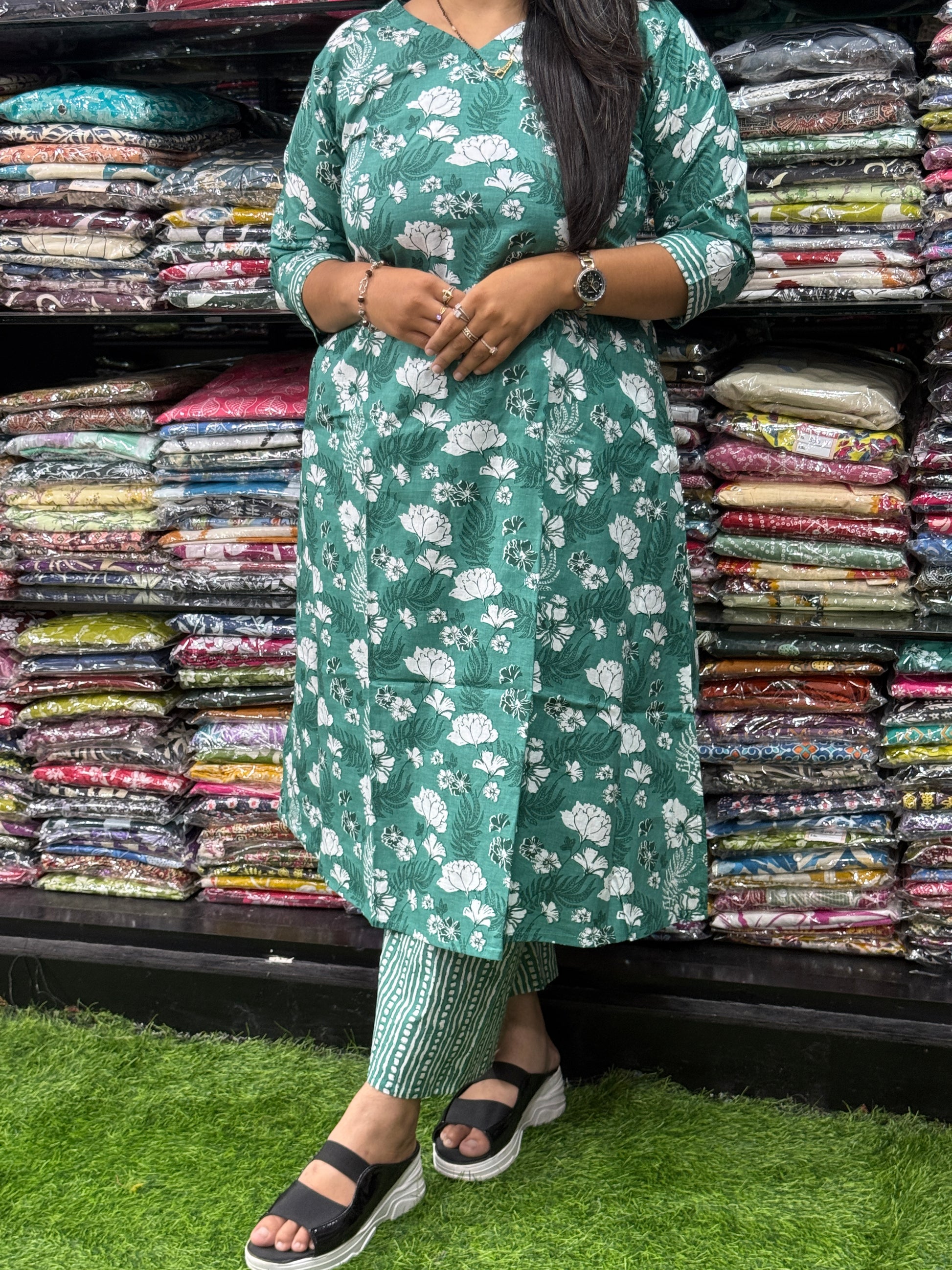 ALINE KURTI WITH PLAZO ( PURE CAMRIC COTTON)