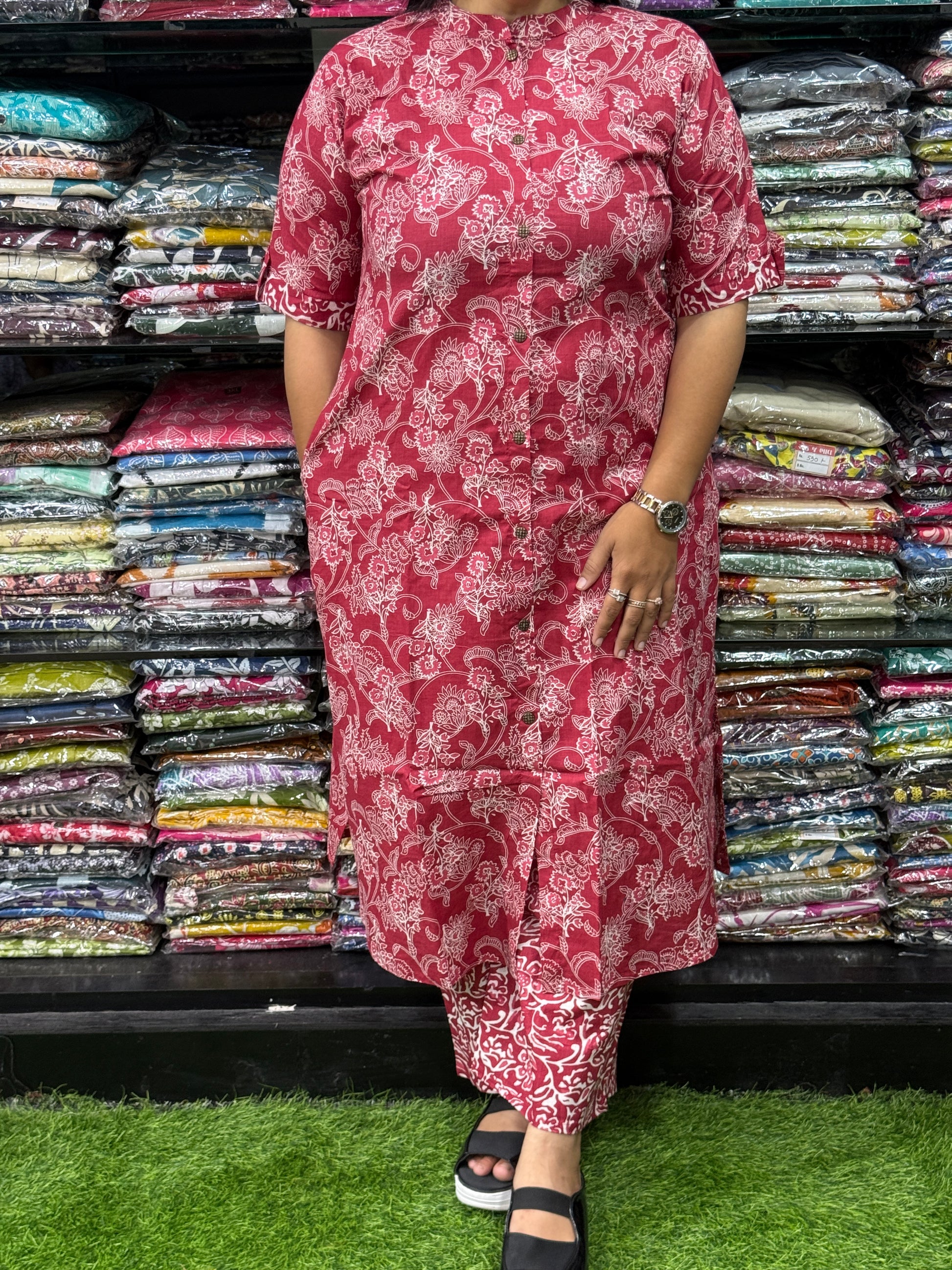 ALINE KURTI WITH PLAZO (PURE CAMRIC COTTON)