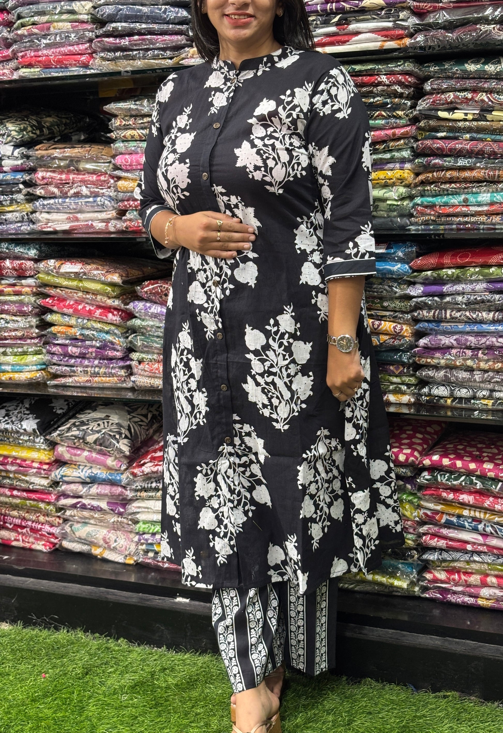 ALINE KURTI WITH PLAZO (PURE CAMRIC COTTON)