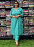 ALINE KURTI WITH PLAZO (FLEX COTTON,HAND MIRROR WORK)