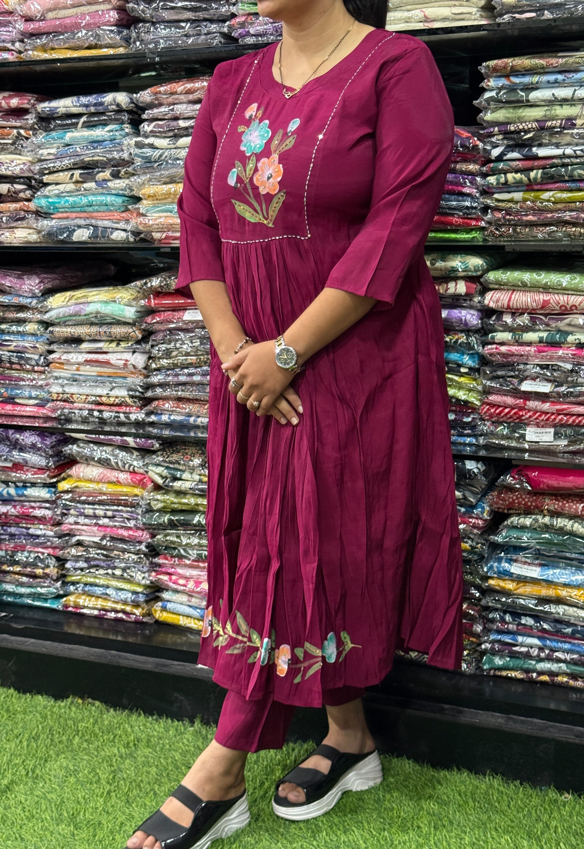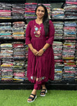 ALINE KURTI WITH PENT(PURE SILK,WITH WORK)