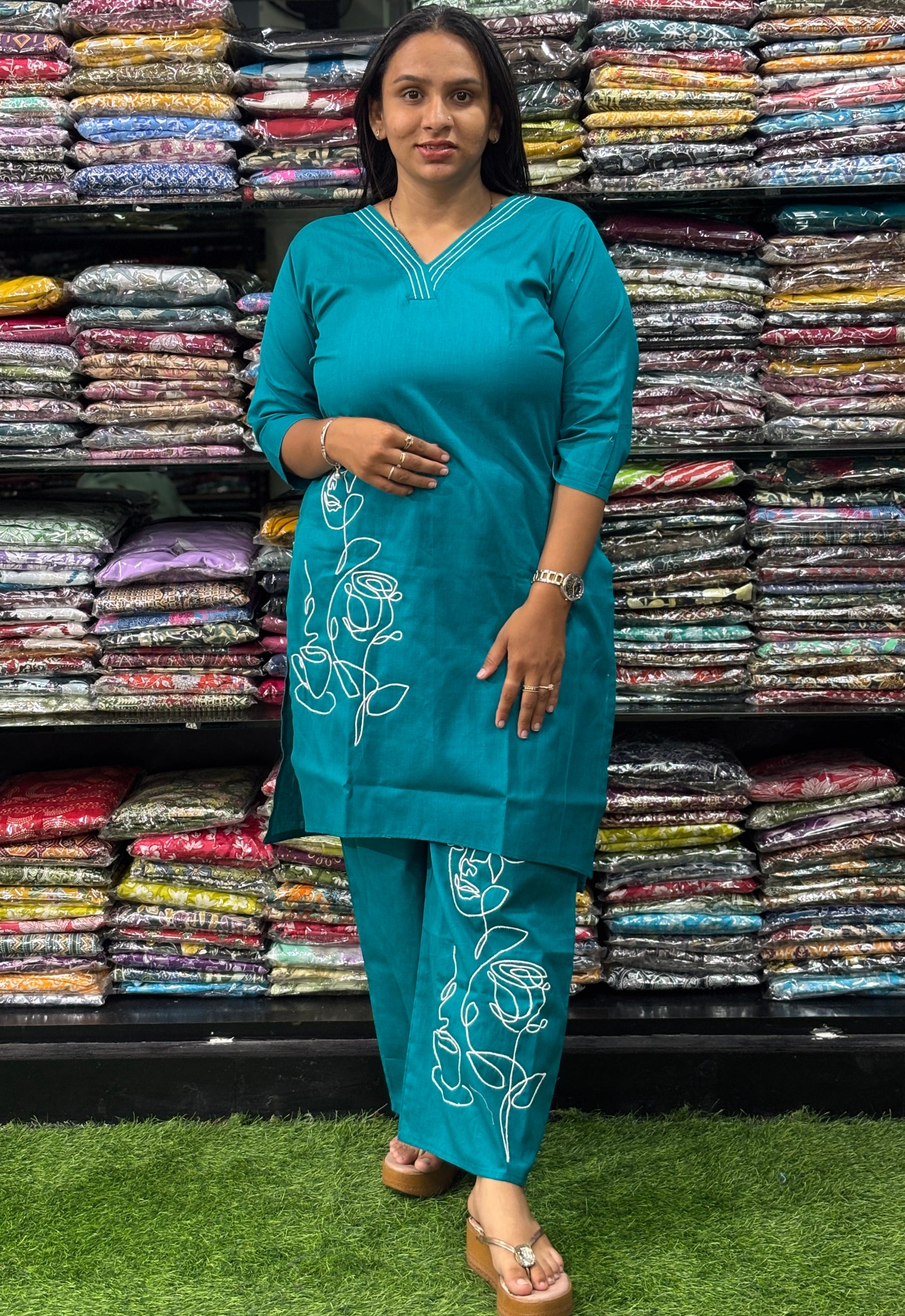 STRAIGHT KURTI-PLAZO (HANDWORK)(PURE FLEX COTTON)