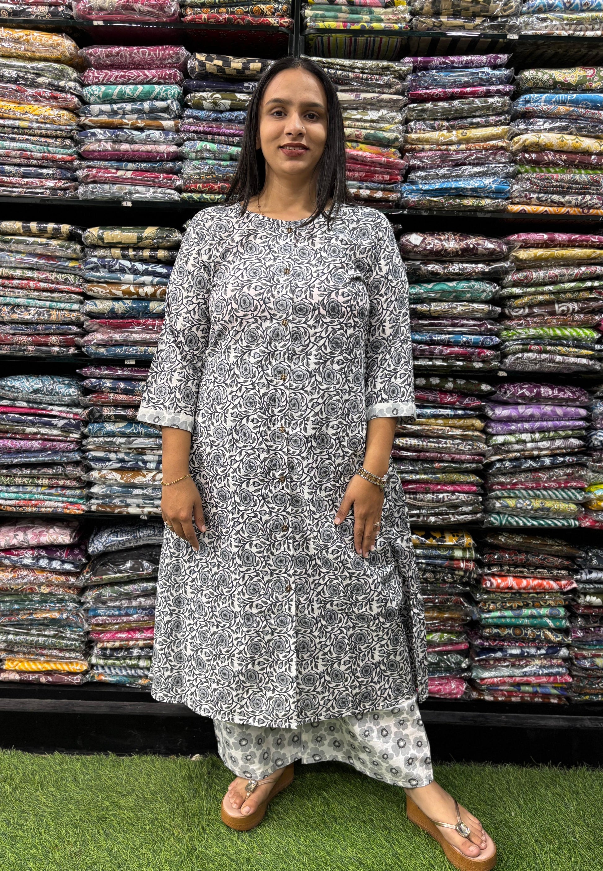 PURE COTTON ALINE ROUND NECK KURTI WITH PLAZO