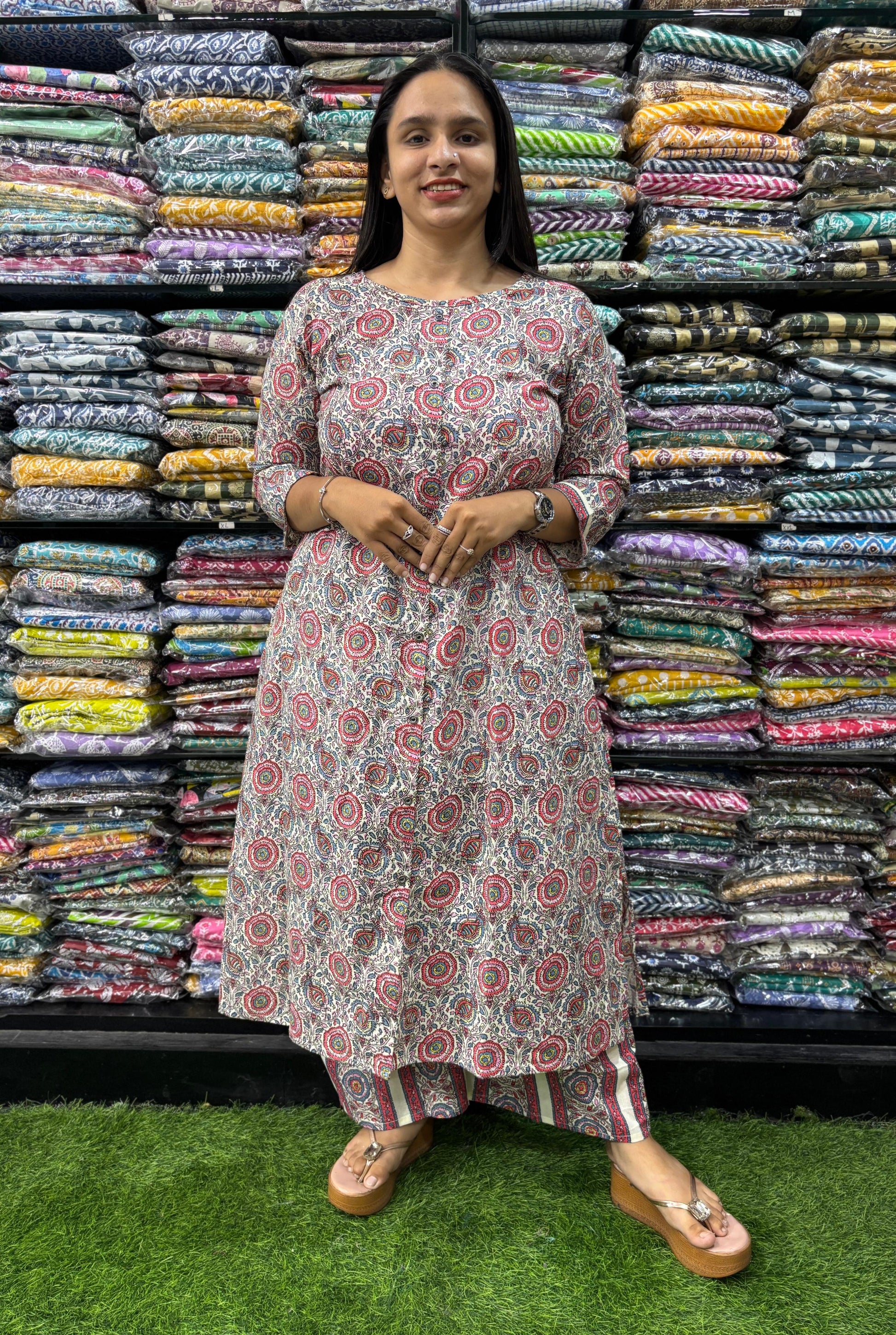 PURE COTTON ALINE ROUND NECK KURTI WITH PLAZO