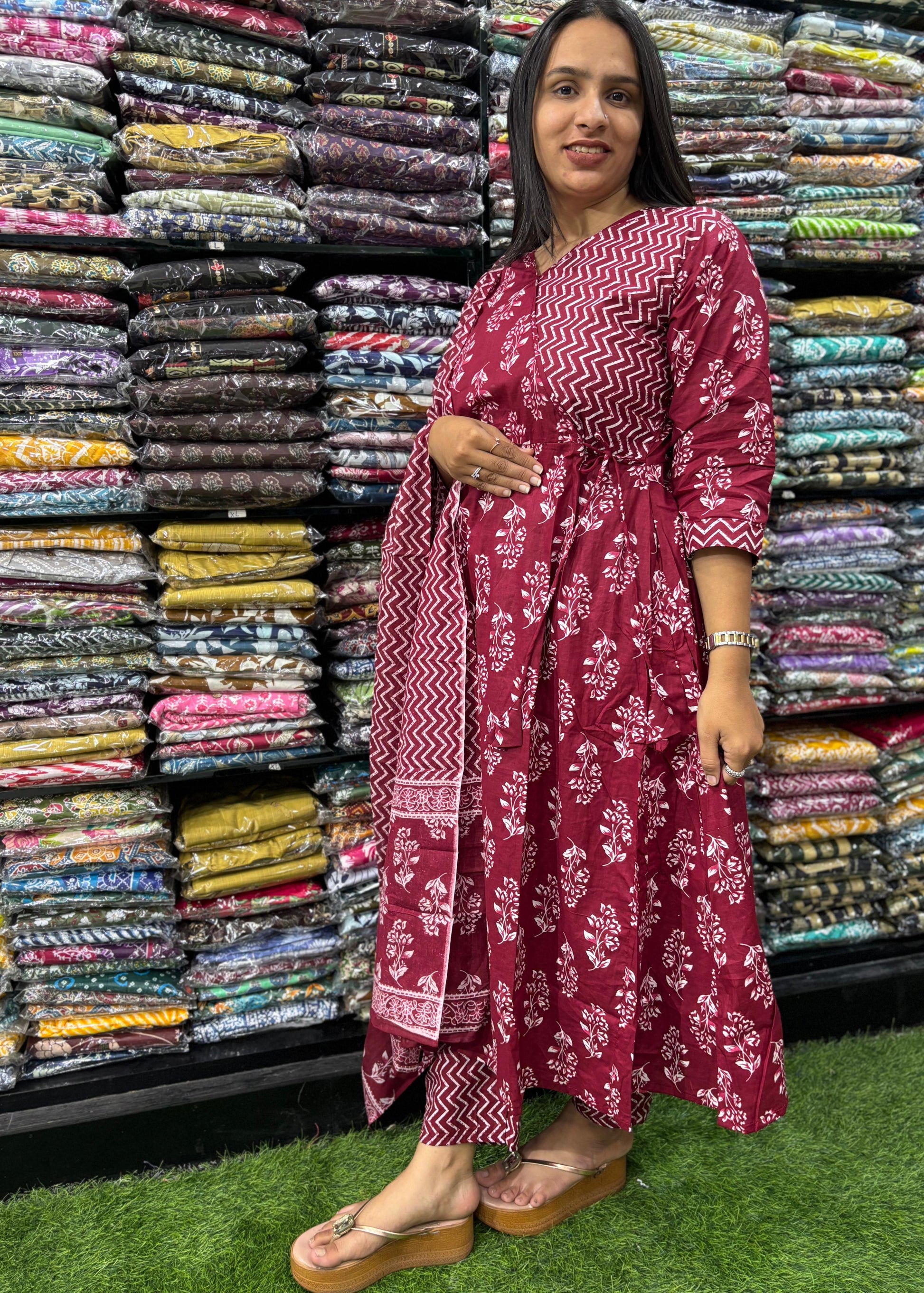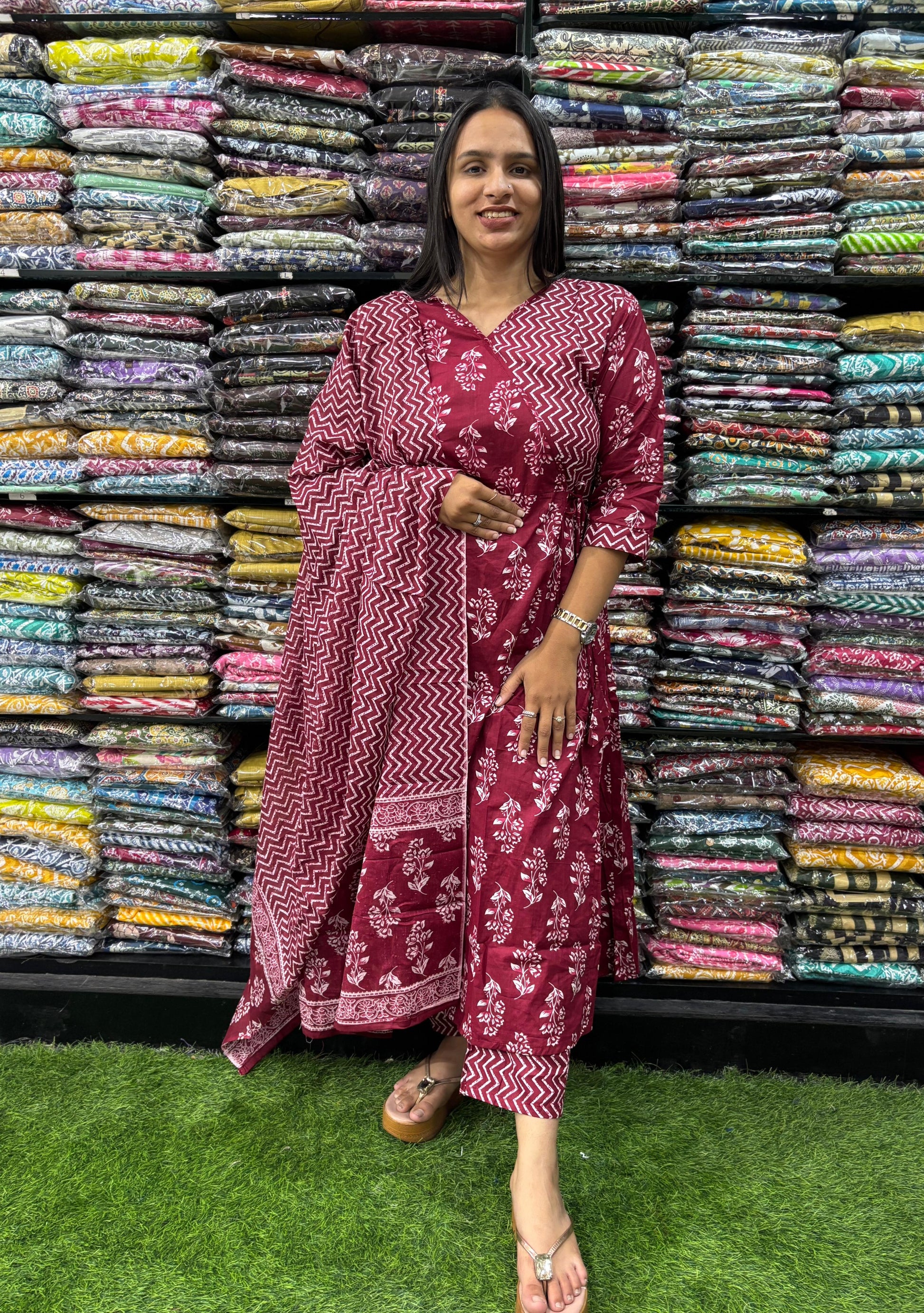 PURE COTTON ALINE KURTI PANT WITH DUPATTA