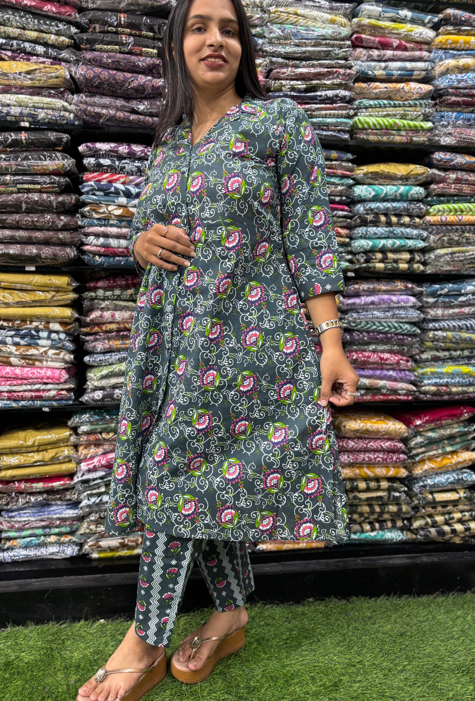 PURE COTTON SUIT COLLAR ALINE KURTI WITH PANT