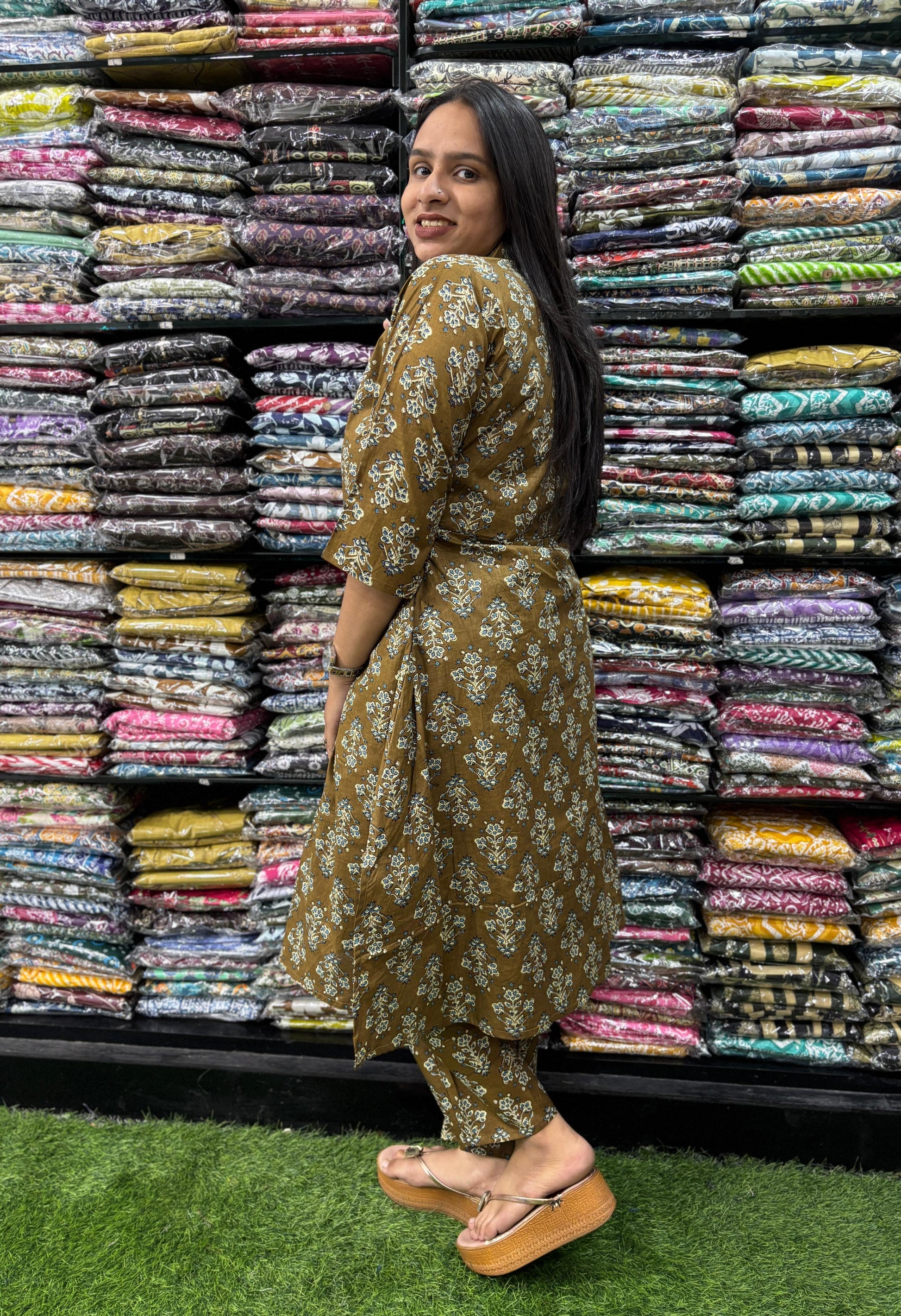 PURE COTTON SUIT COLLAR ALINE KURTI WITH PANT