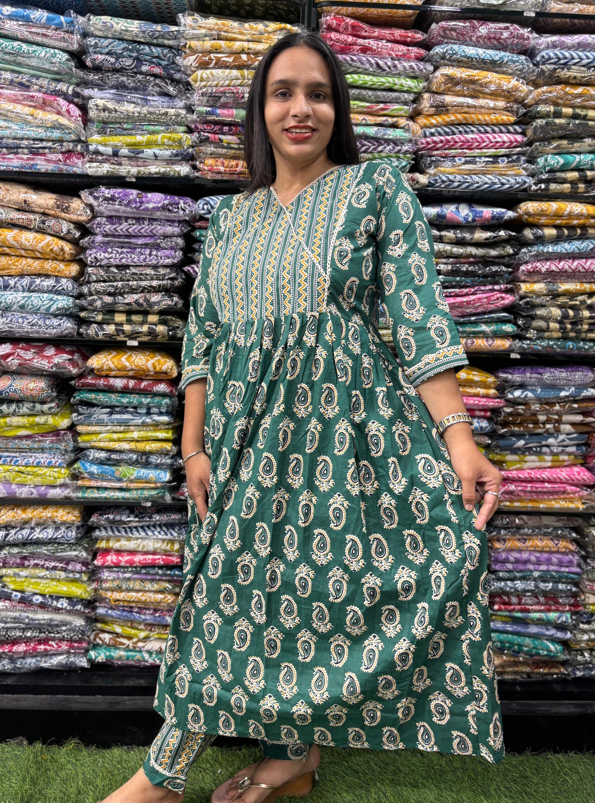 PURE COTTON ROUND KURTI WITH LINING & PANT