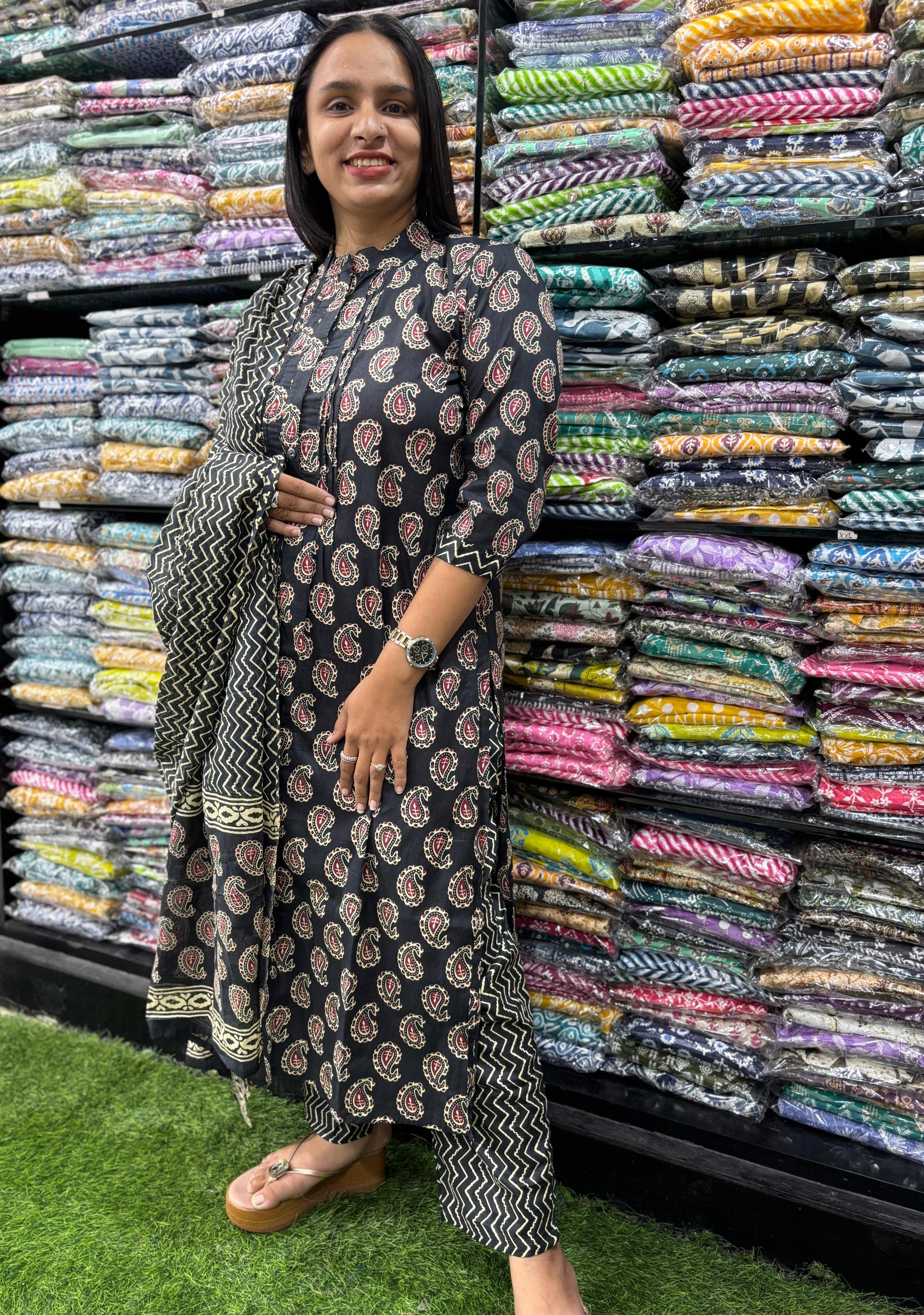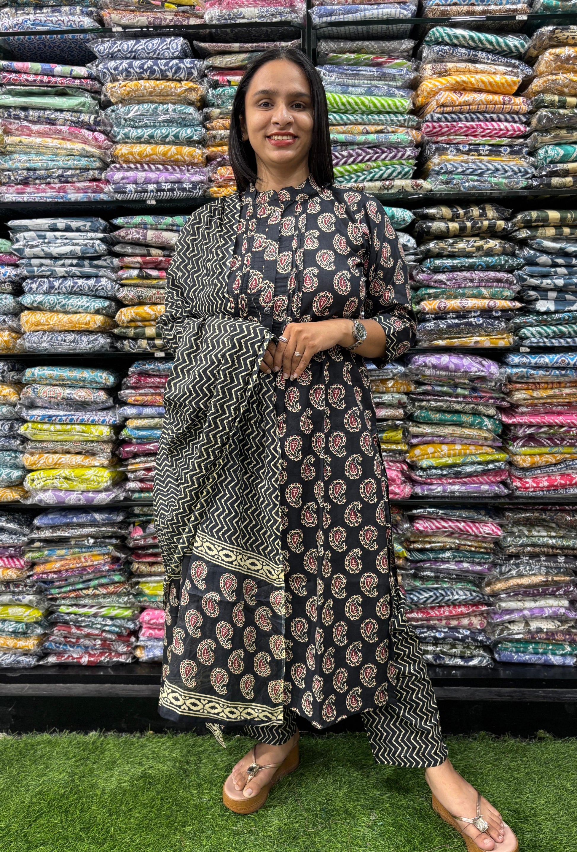PURE COTTON STRAIGHT CHINESE KURTI PANT & DUPATTA