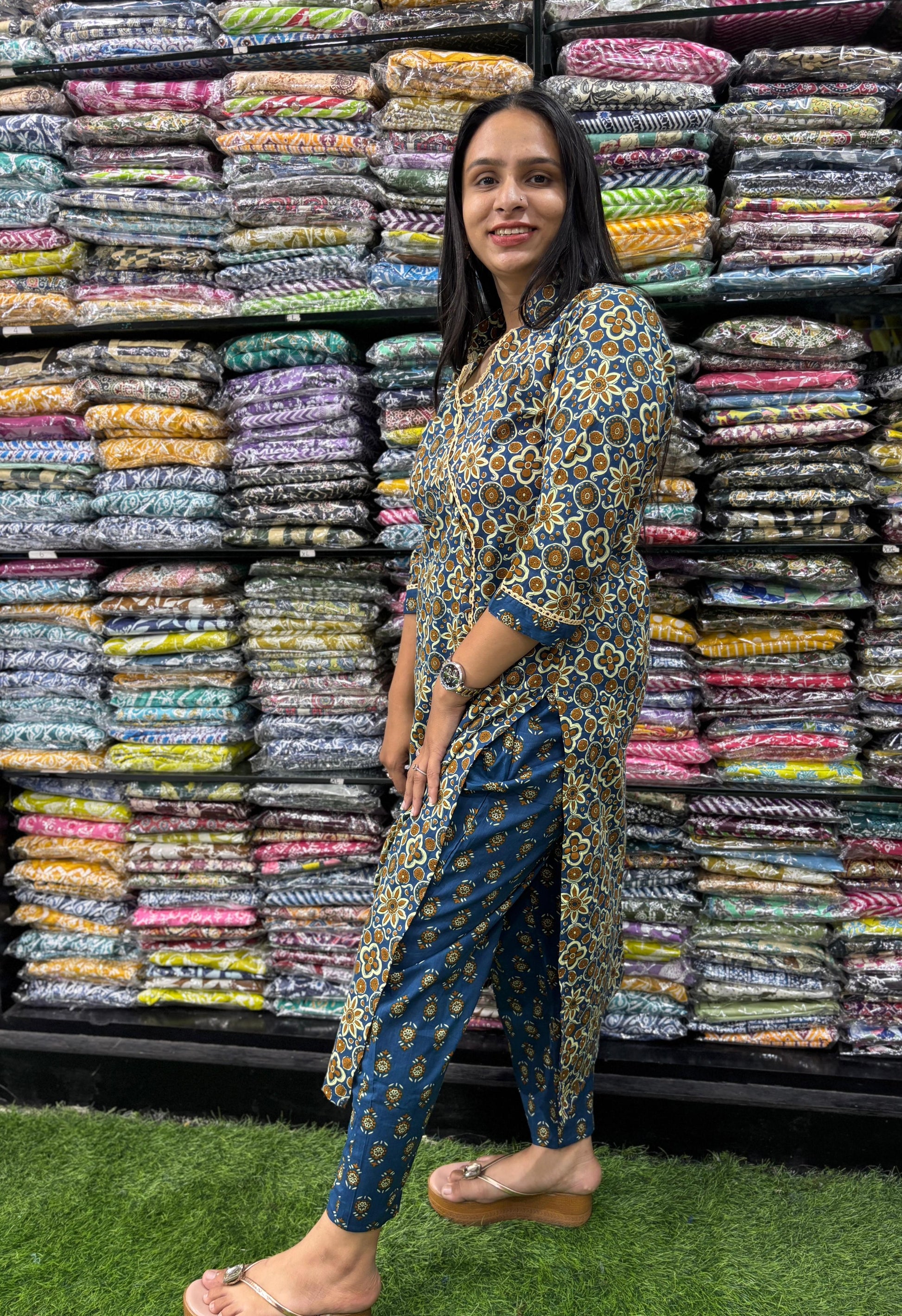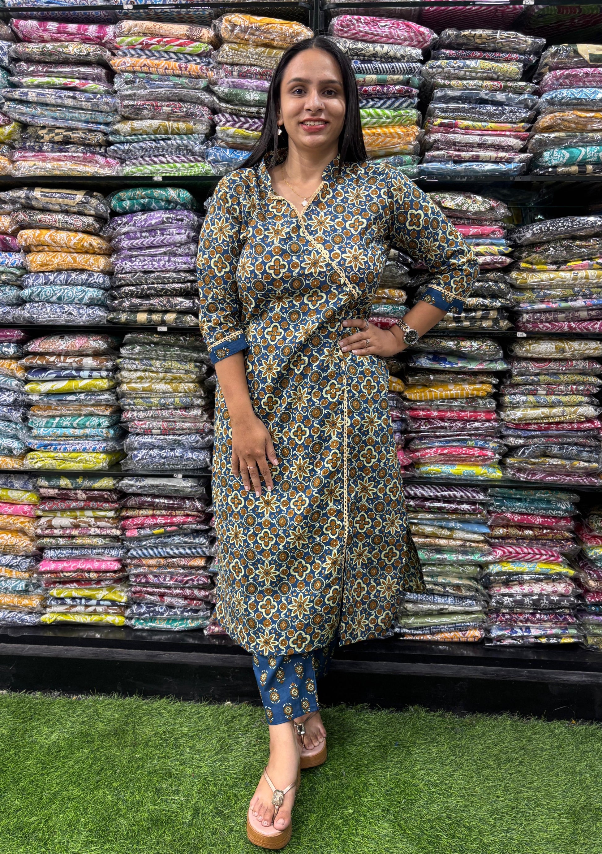 PURE COTTON ANGRAKHA STRAIGHT KURTI WITH PANT
