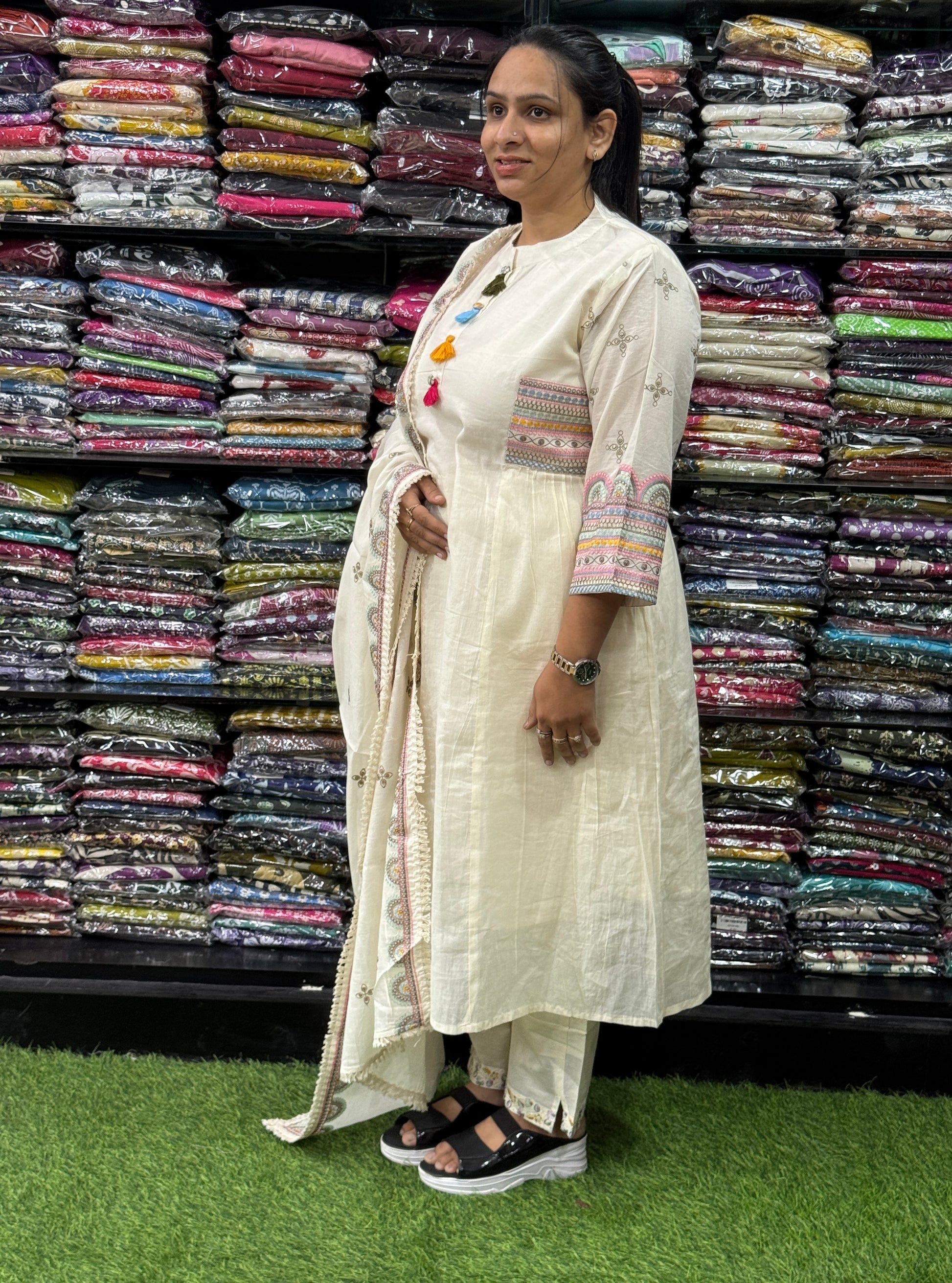 ROUND KURTI PANT DUPATTA (PURE COTTON(COTTON LINING),WITH WORK)