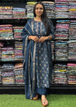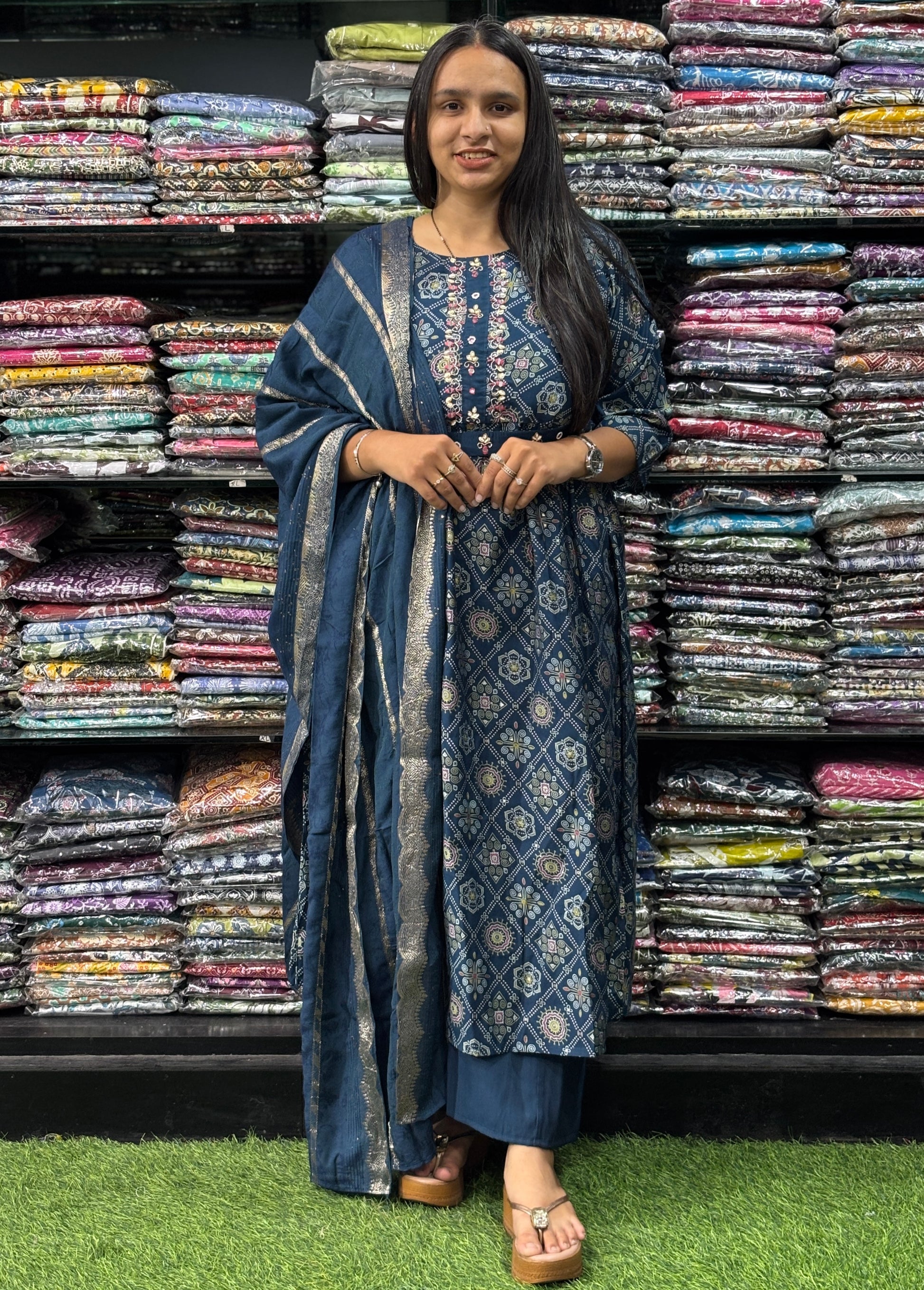 HANDWORK KURTI-PLAZO WITH DUPATTO (ROMAN SILK)