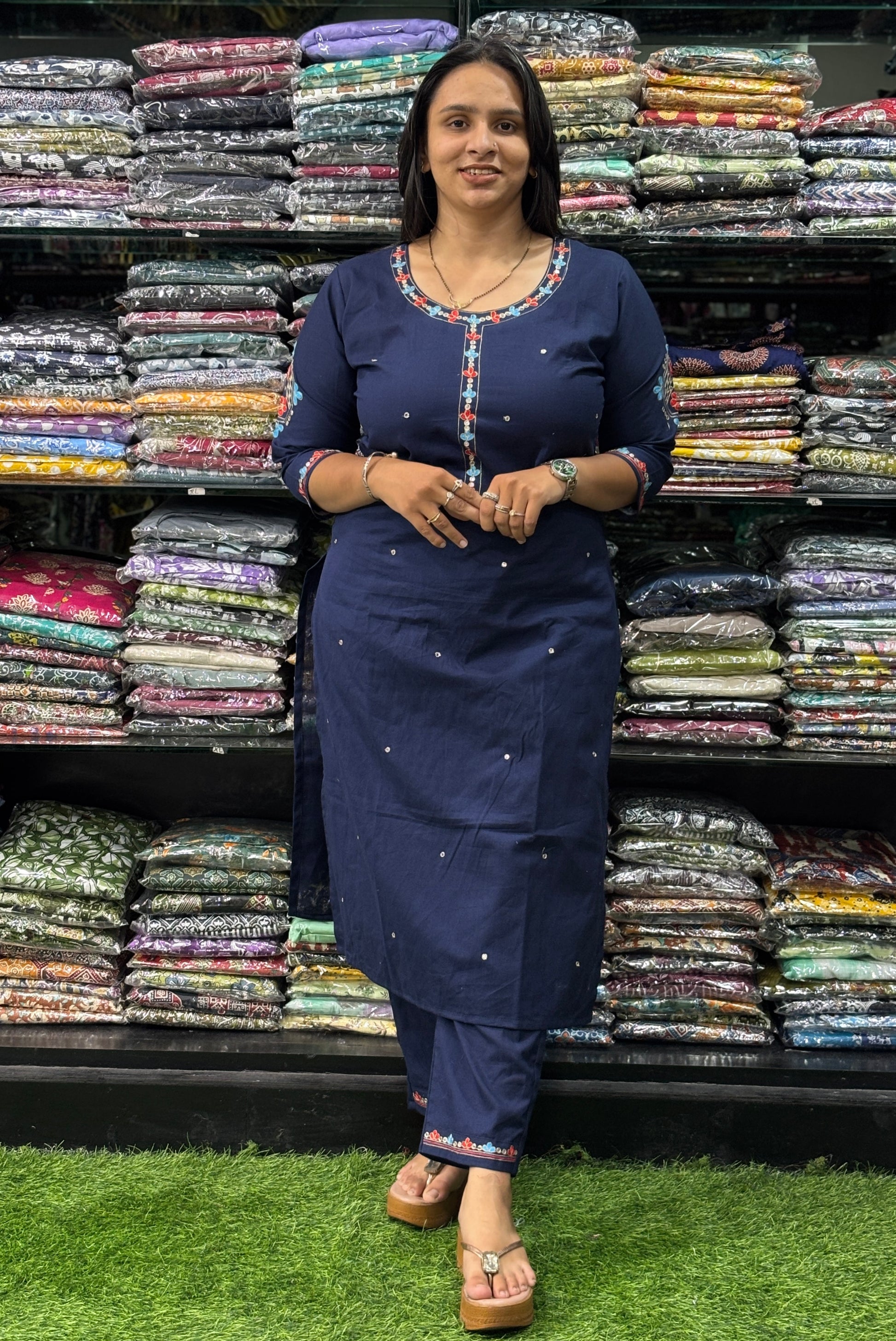 STRAIGHT KURTI-PANT (PURE FLEX COTTON,HAND EMBROIDERY)