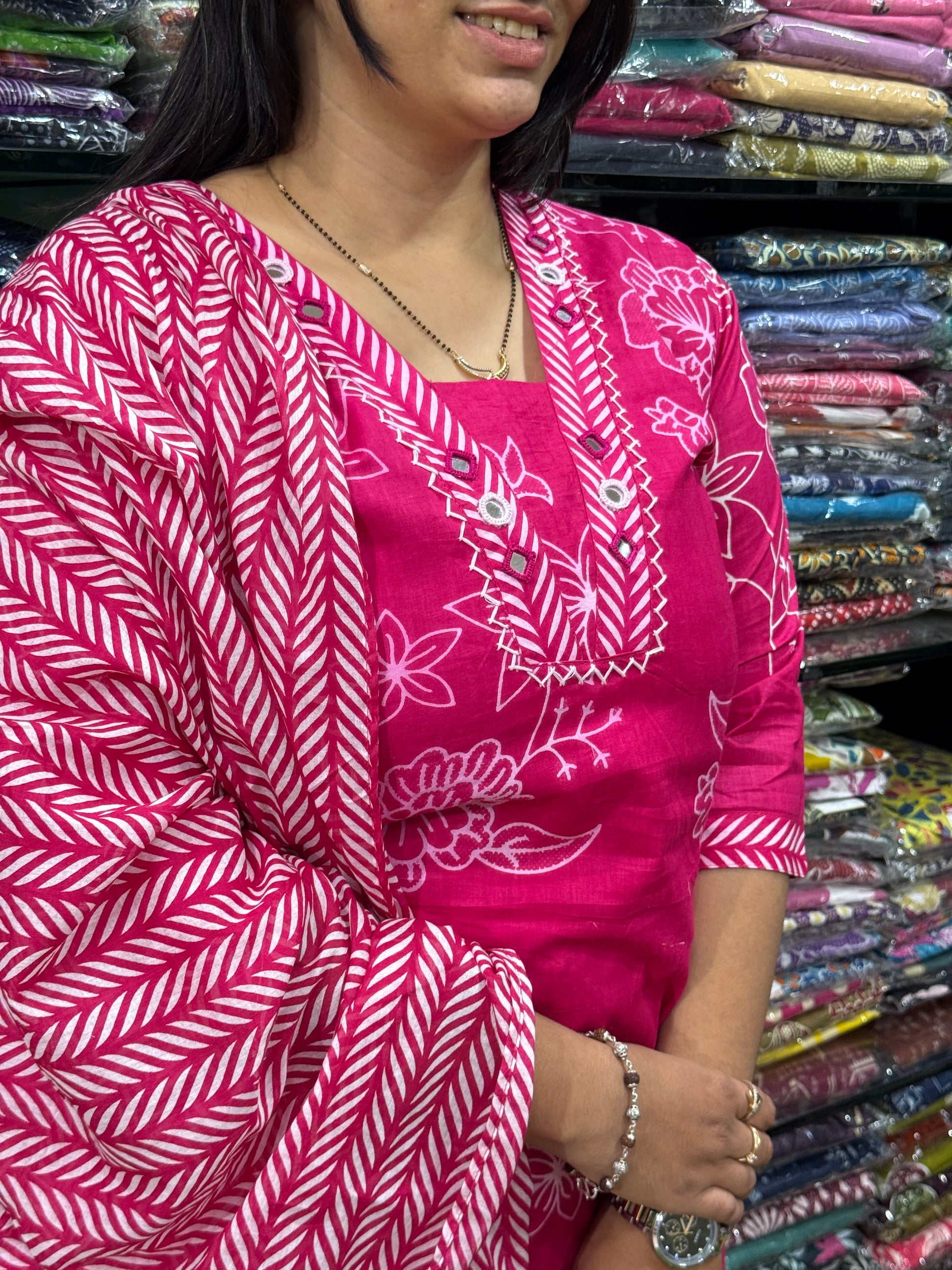 STRAIGHT KURTI PANT WITH DUPATTA (PURE CAMRIC COTTON,HANDWORK,HALF COTTON LINING)